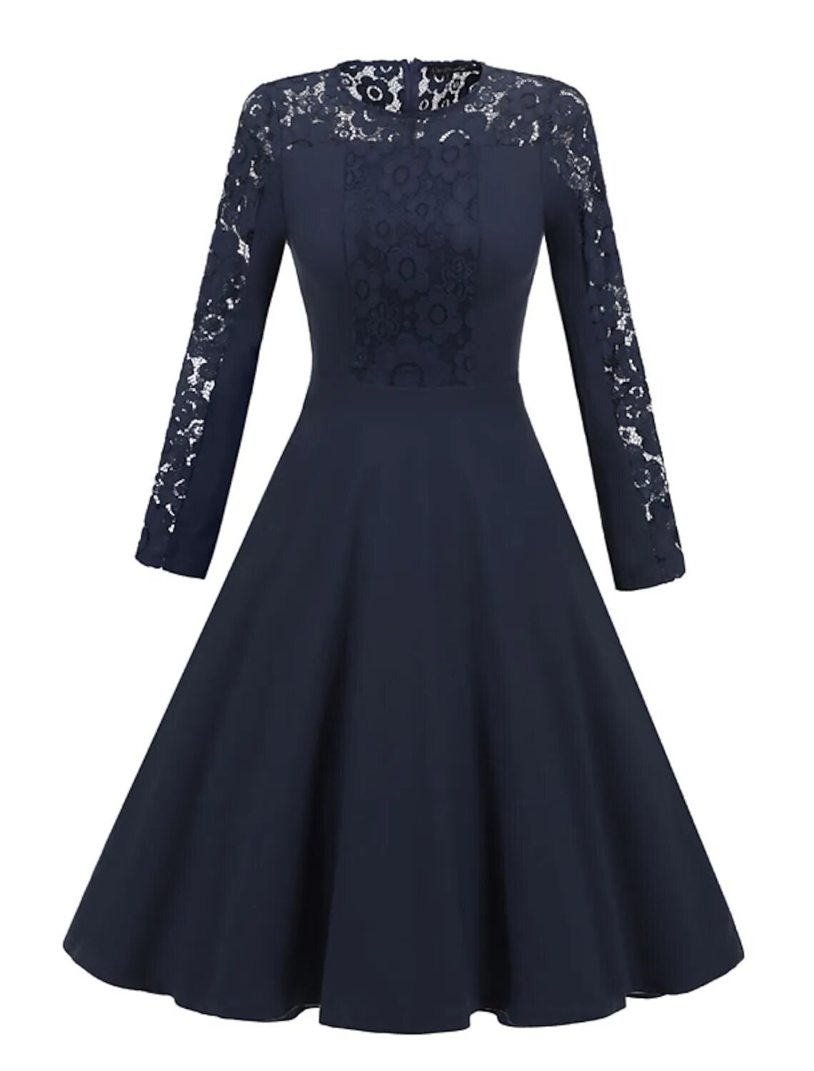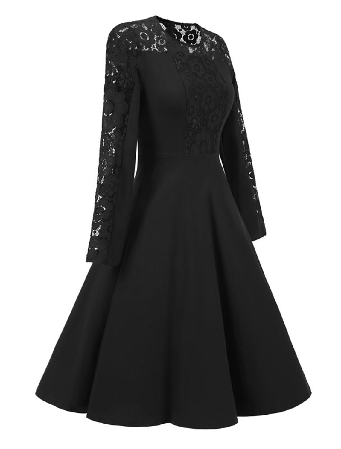 Long Sleeve Solid Color Lace Spring Summer Party Crew Neck Stylish Elegant 2022.