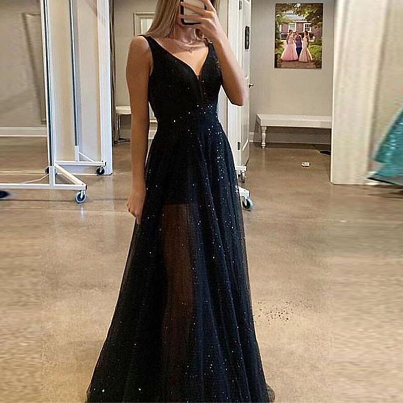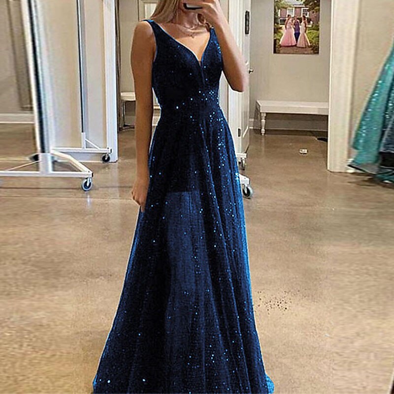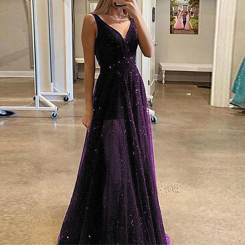 Maxi long Dress Black Purple Wine Dark Green Dark Blue Sleeveless Pure Color Sequins Mesh Spring Summer V Neck Party Elegant Fashion Party Dress.