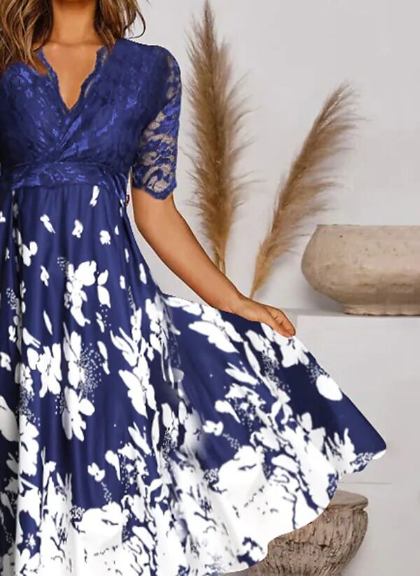 Sleeve Floral Lace Print Summer V Neck Casual 2022