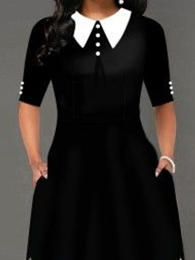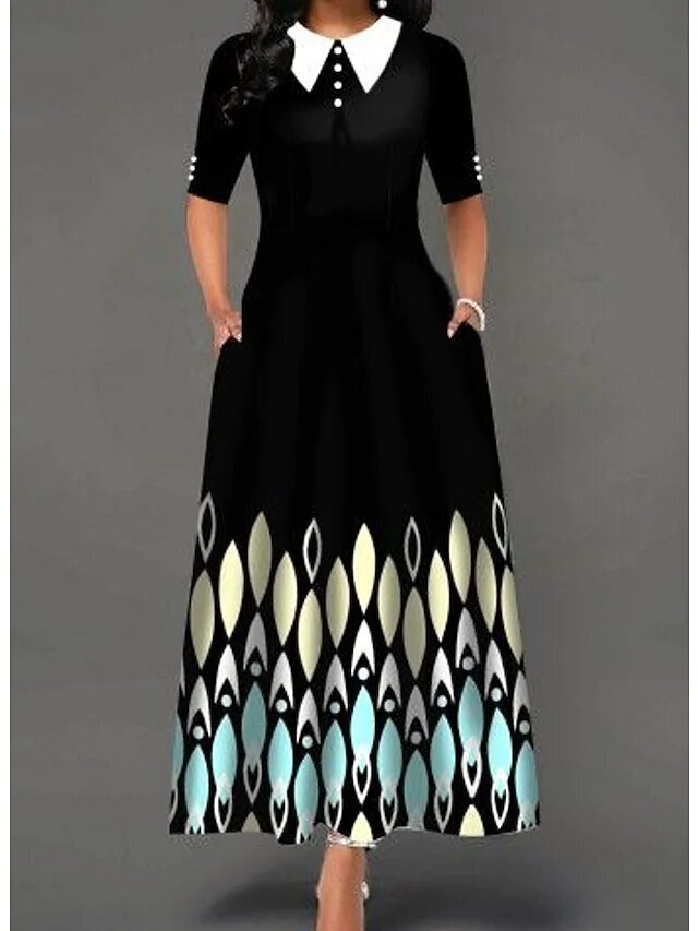 Black Half Sleeve Print Ruched Button Print Spring Summer Shirt Collar Elegant Modern.