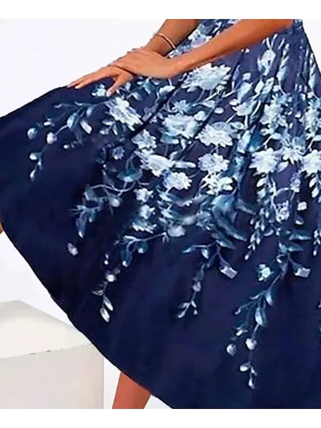 Blue Half Sleeve Floral Ruched Print Spring Summer V Neck Stylish Modern.