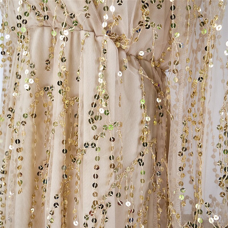 Sleeve Pure Color Sequins Tassel Fringe Fall Summer V Neck Casual