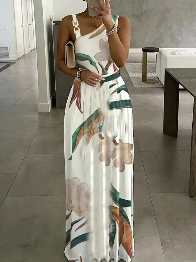 White Sleeveless Floral Ruched Print Spring Summer Cold Shoulder Stylish Modern.