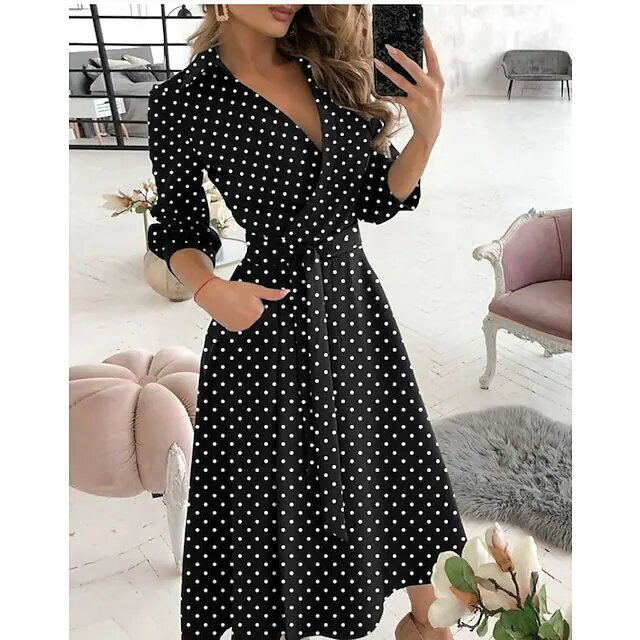 Dress Letter printing Butterfly print Big wave point Small dots Diamont printing Black khaki sky Blue Red Army Green Long Sleeve Print Lace up Print Spring Summer Shit.