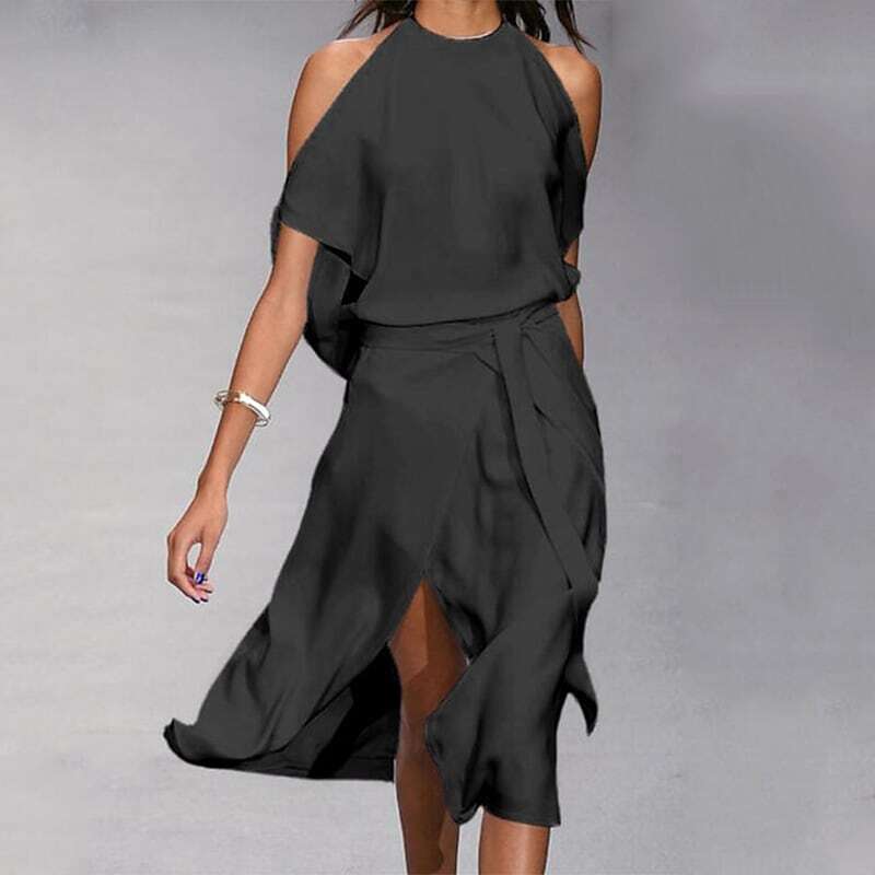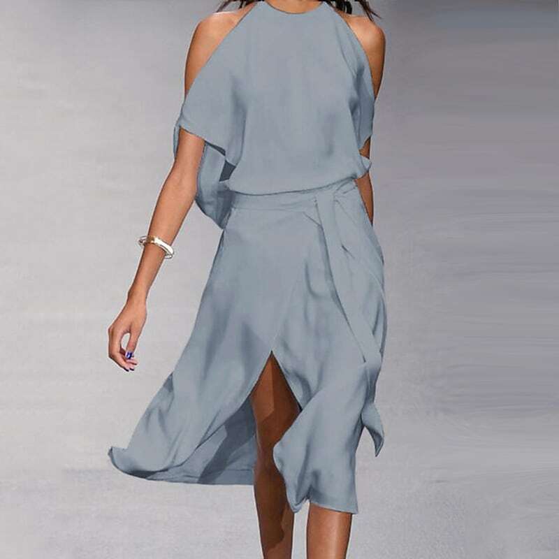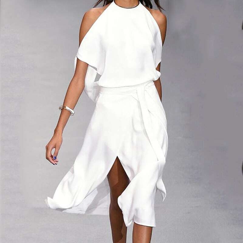 Dress Midi Dress White Black Gray Sleeveless Pure Color Split Lace up Spring Summer Halter Neck Stylish Elegant Modern Loose.