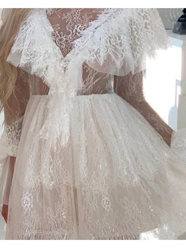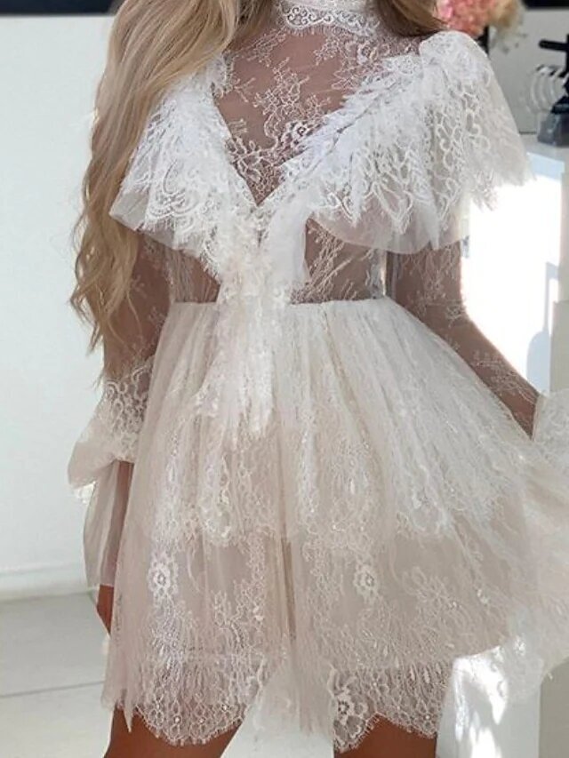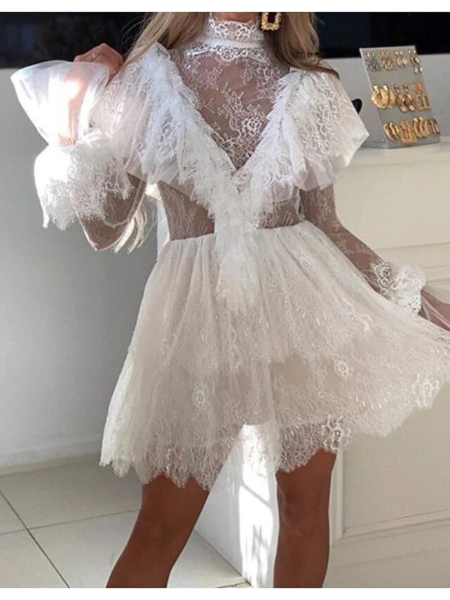 White Long Sleeve Pure Color Hollow Out Patchwork Summer High Neck Fashion Modern.