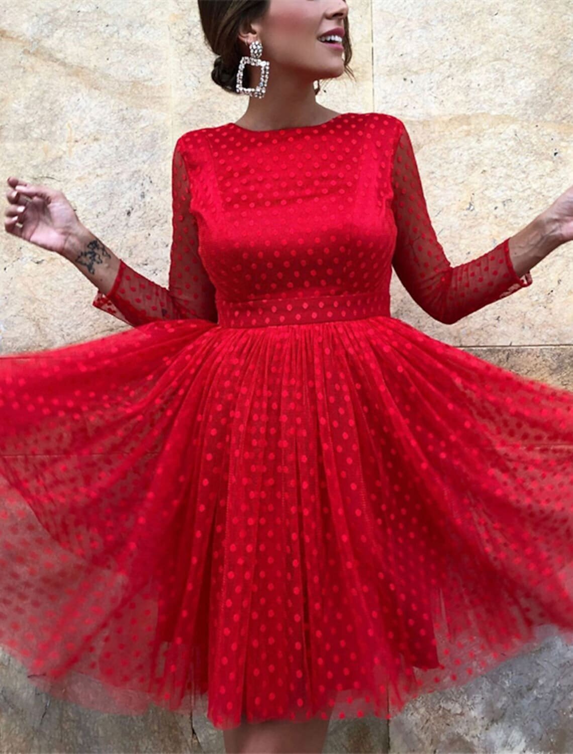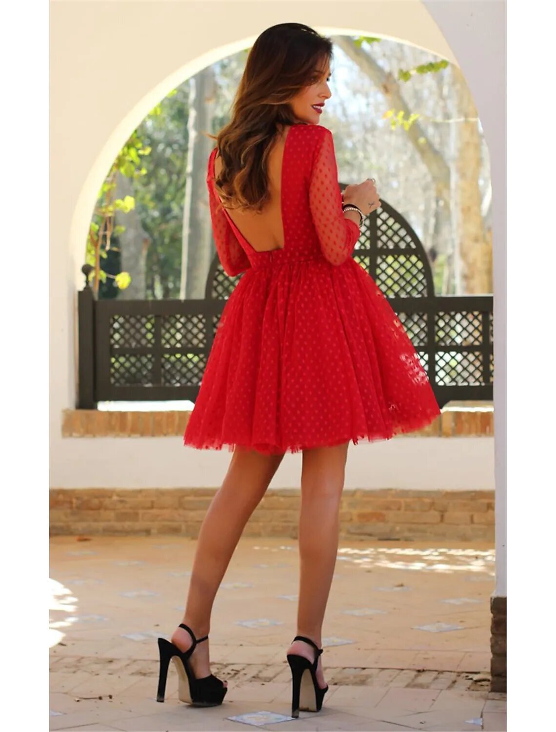 Sleeve Solid Color Backless Lace Patchwork Fall Winter Round Neck Hot Elegant Sexy Party 2022