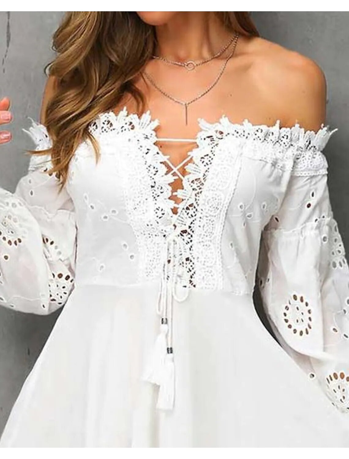 Sleeve Embroidery Embroidered Ruched Cold Shoulder Fall Winter Off Shoulder Fashion Modern
