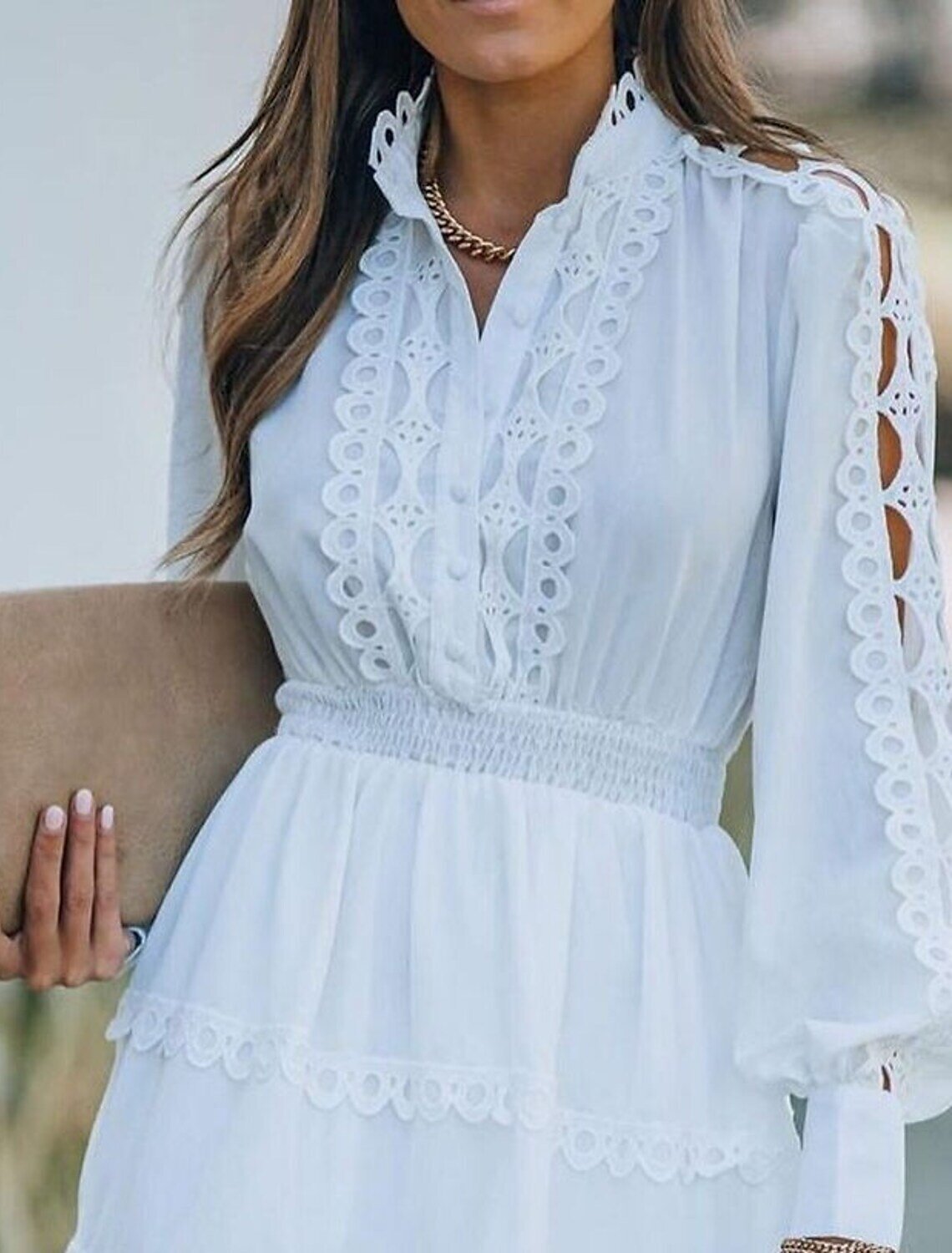 Sleeve Solid Color Ruched Fall Winter Shirt Collar Fashion Modern