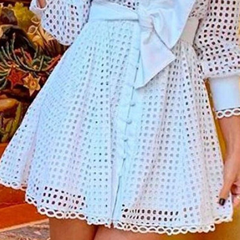 Sleeve Pure Color Hollow Out Bow Fall Winter Stand Collar Stylish Elegant 2022