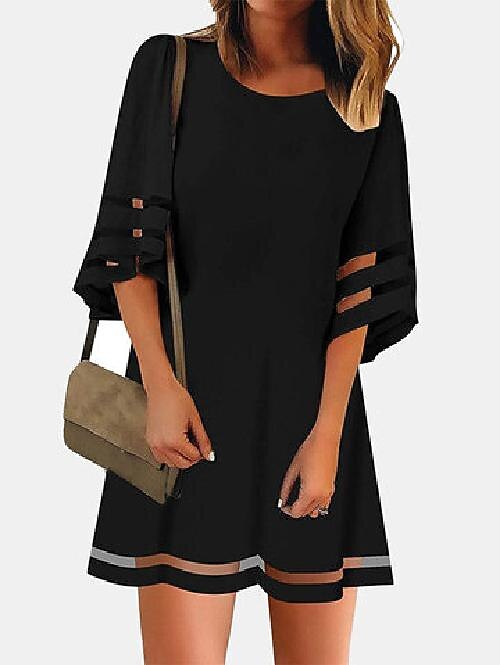 Sleeve Solid Color Hollow Out Patchwork Fall Spring Round Neck Work Casual 2022
