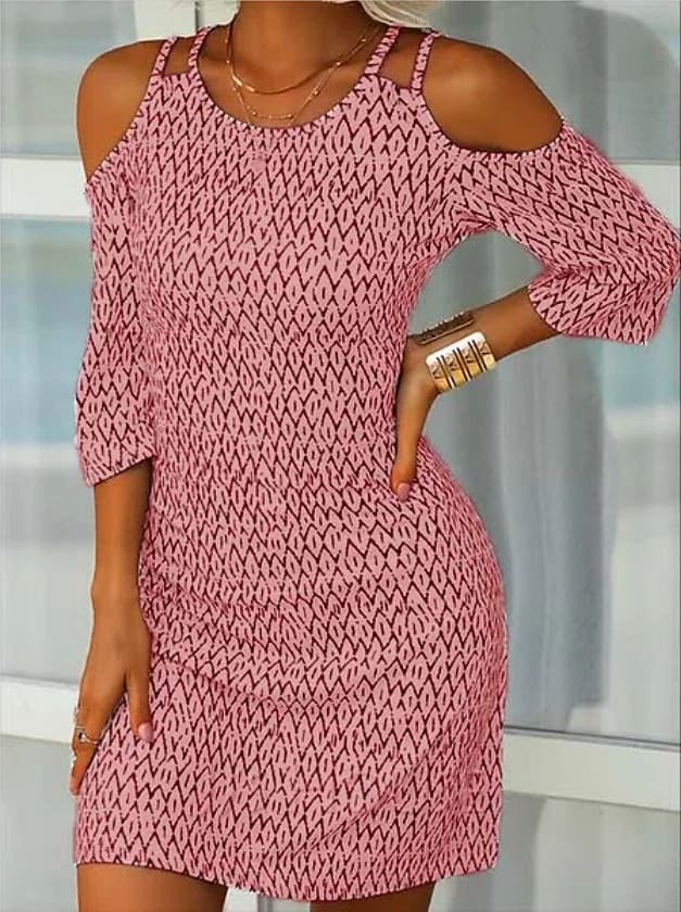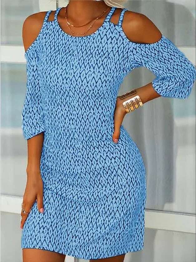 Dress Short Mini Dress Blue White Pink Yellow Short Sleeve Print Spring Summer Casual.