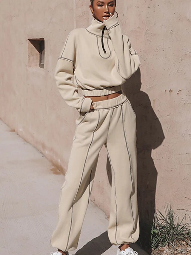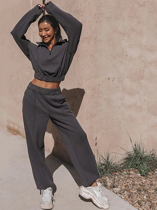 Outdoor Casual Two Piece Set Stand Collar Crop Top Hoodie Tracksuit Pant Jogger Pants Zipper.