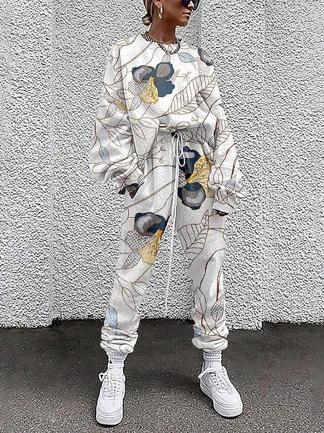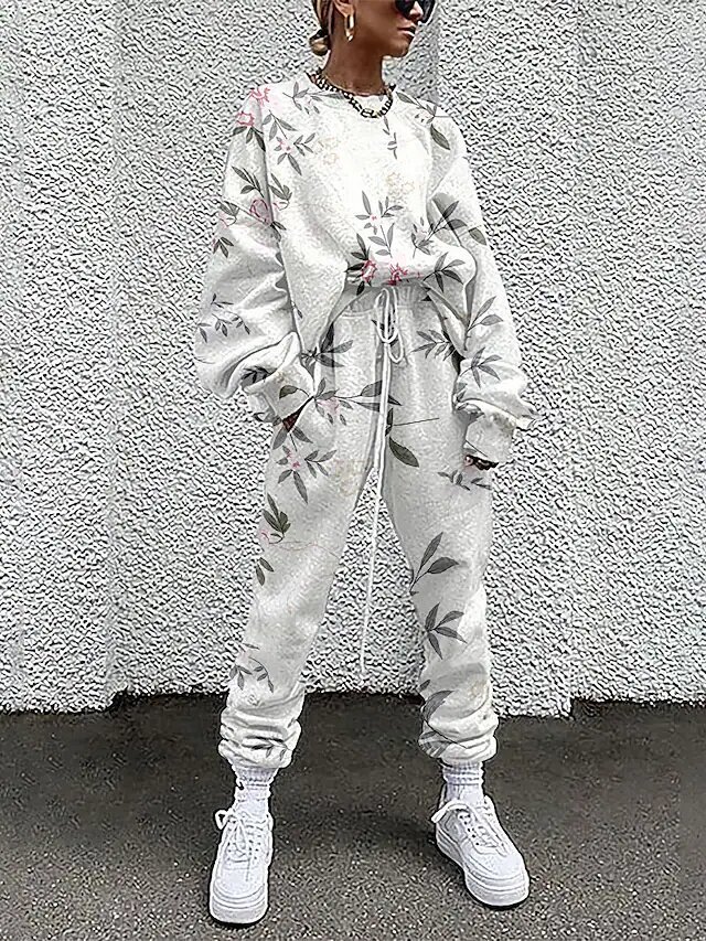 Outdoor Casual Two Piece Set Sweatshirt Tracksuit Pants Sets Jogger Pants Drawstring.