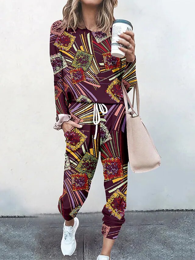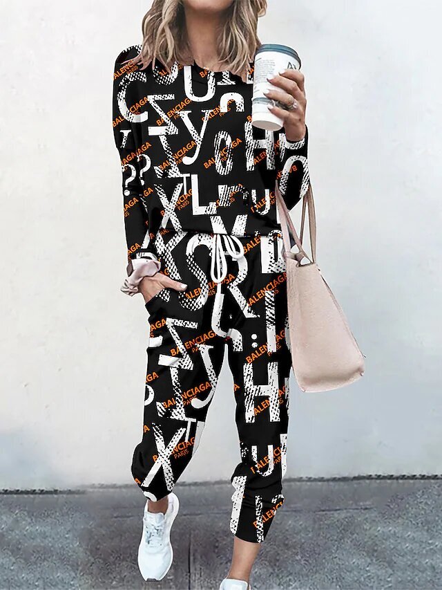 Letter Sports Outdoor Casual Two Piece Set Sweatshirt Tracksuit Pants Sets Jogger Pants Drawstring.