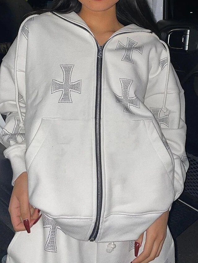 Outdoor Casual Two Piece Set Hooded Hoodie Sweatshirt Tracksuit Pant Jogger Pants Sequins.