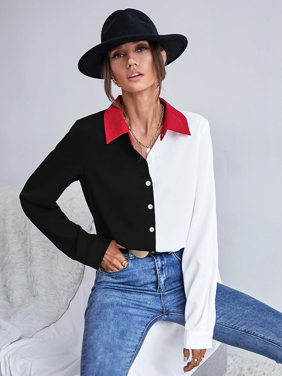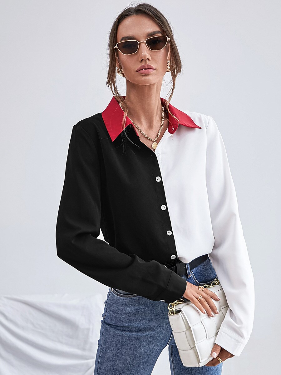 Women's Blouse Color Block Daily Weekend