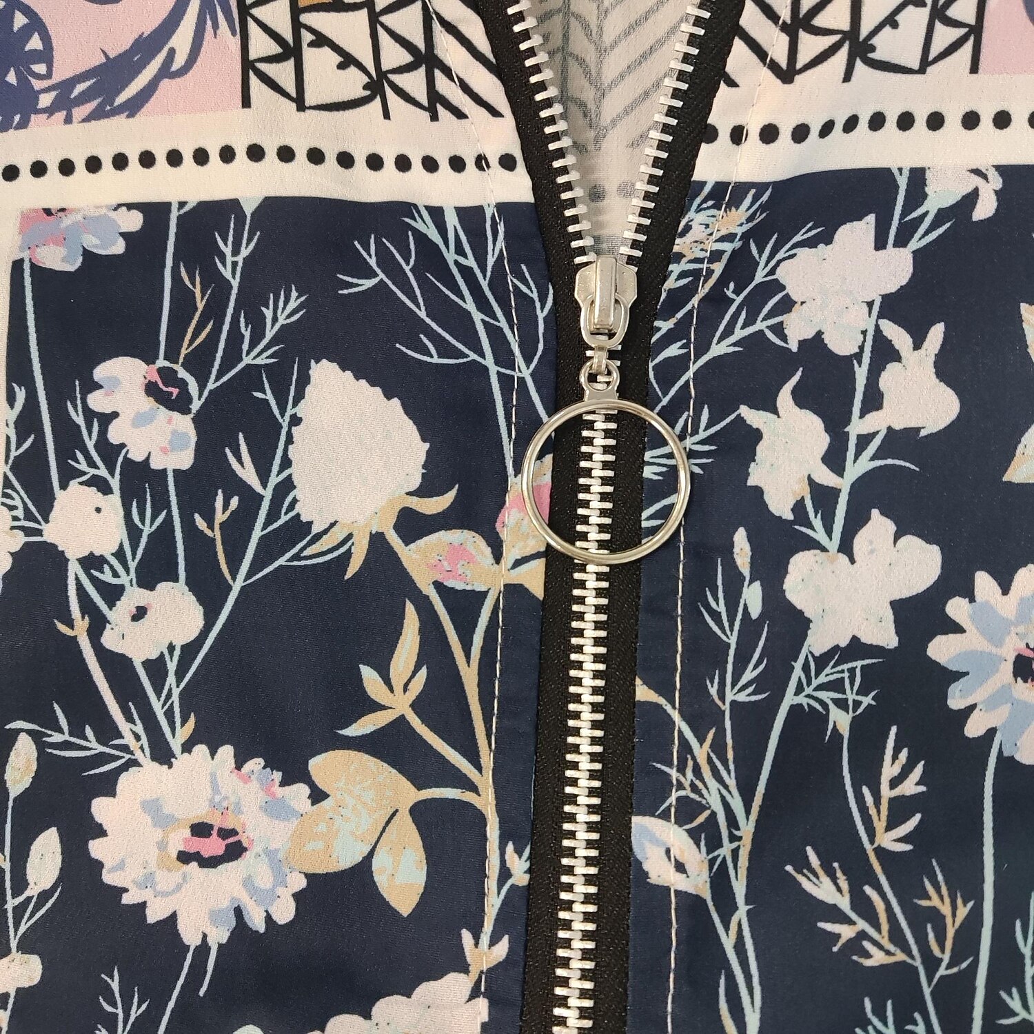 Sleeve Zipper Flowing tunic Print V Neck Casual Streetwear