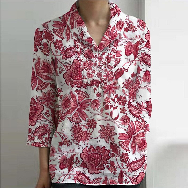 Sleeve Button Print Shirt Collar Casual Streetwear