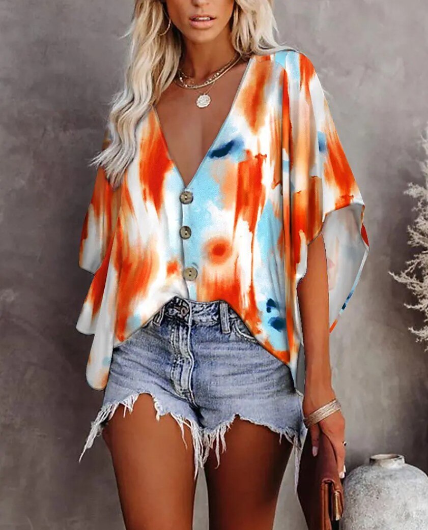 Women's Blouse Floral Tie Dye Holiday