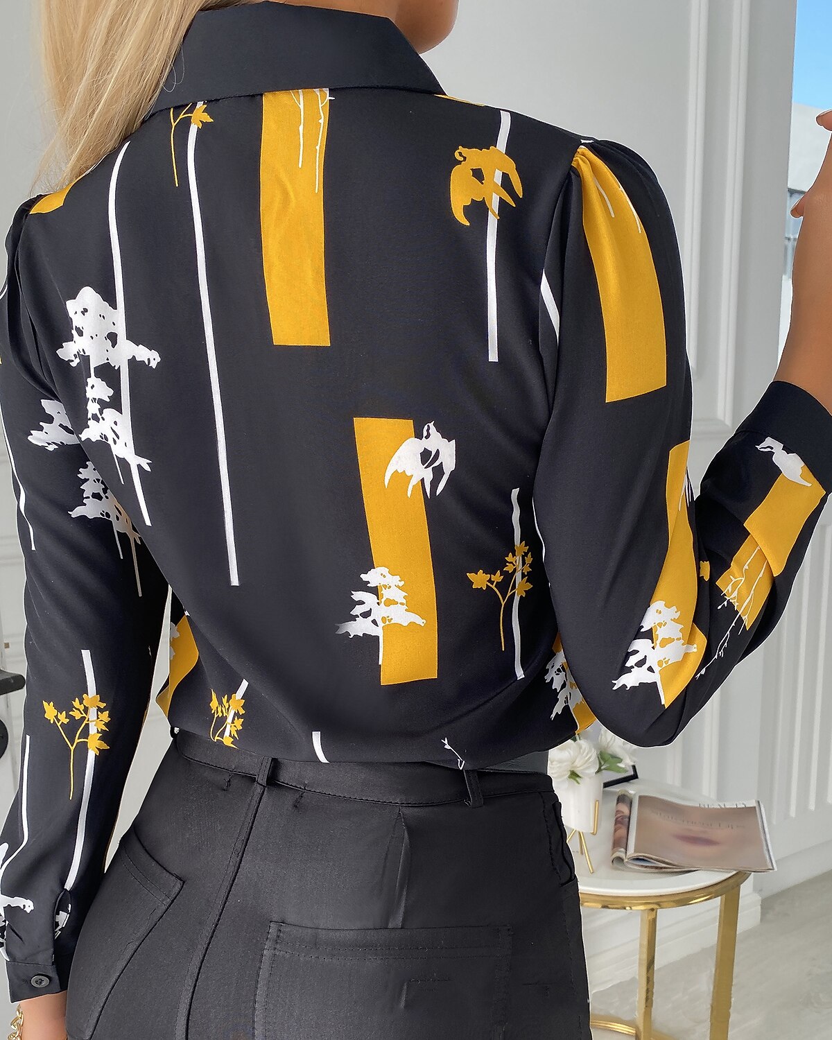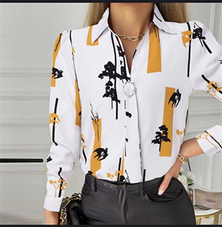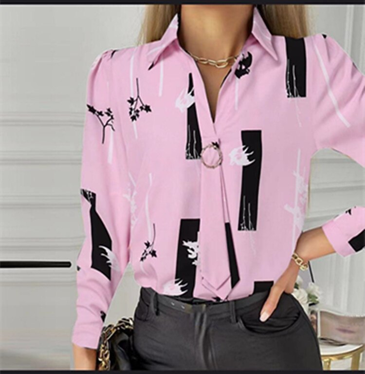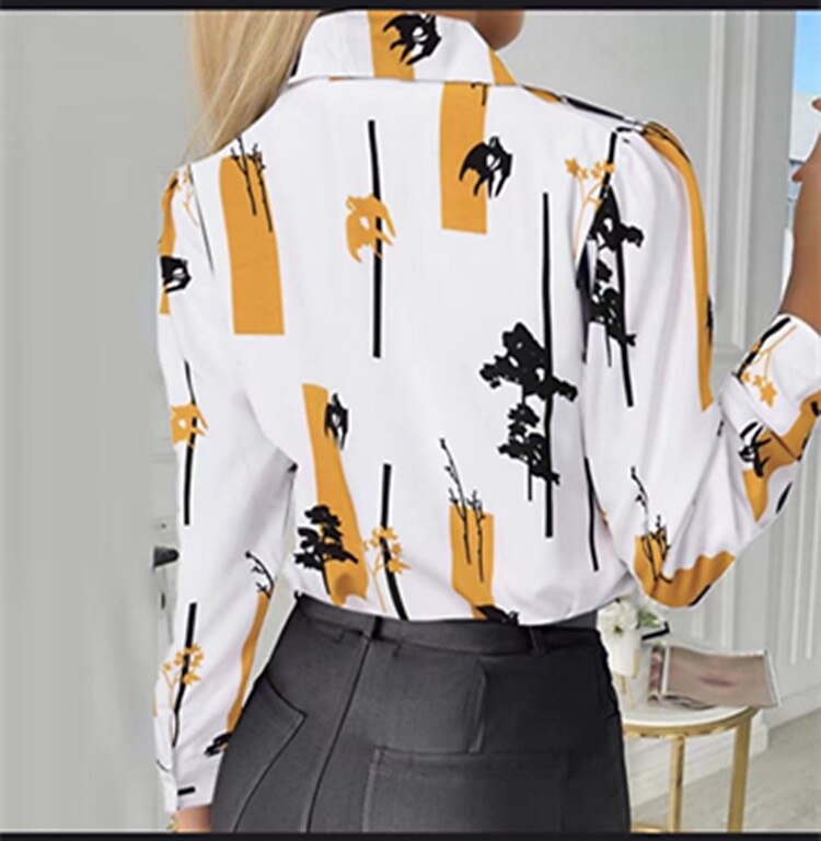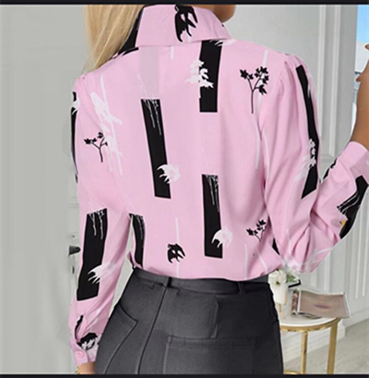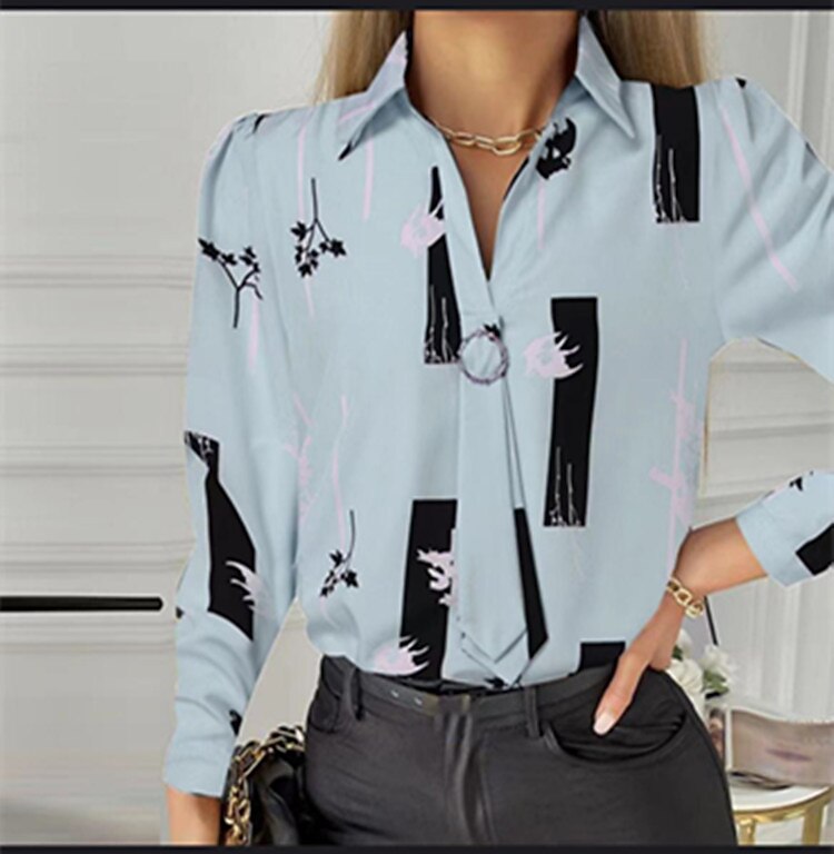 Sleeve Print Shirt Collar Casual