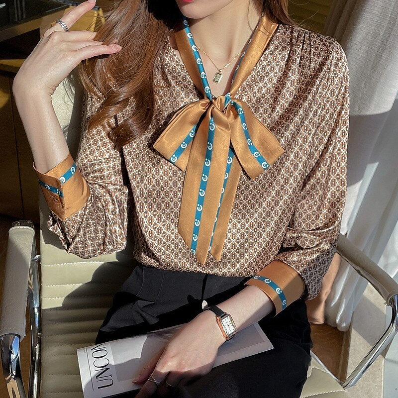 Sleeve Lace up Print V Neck Elegant Streetwear
