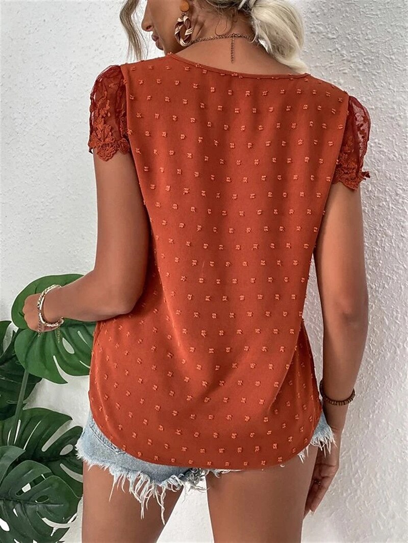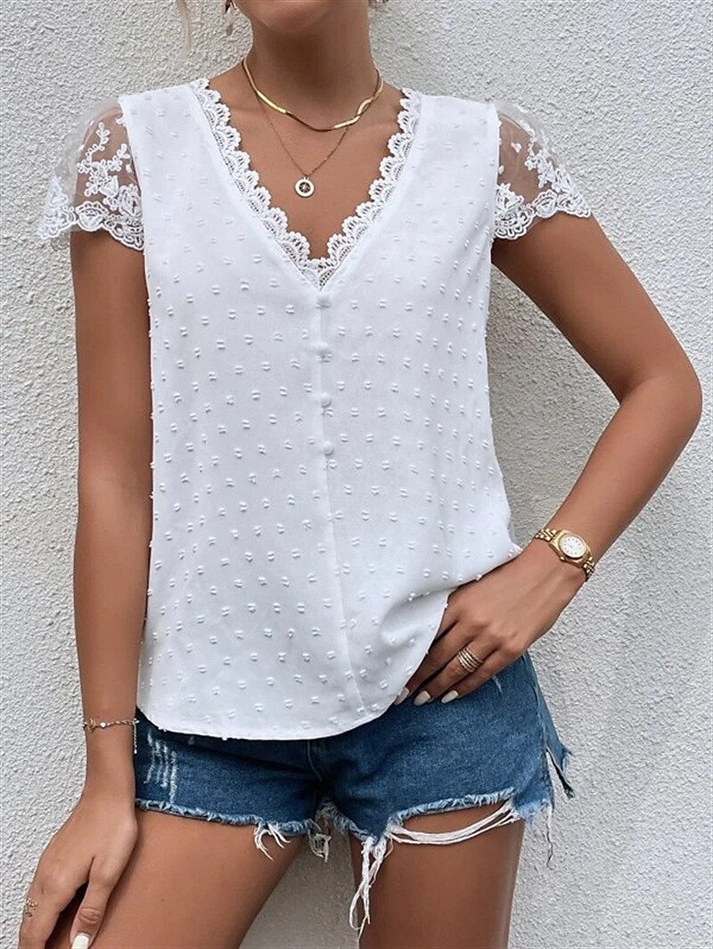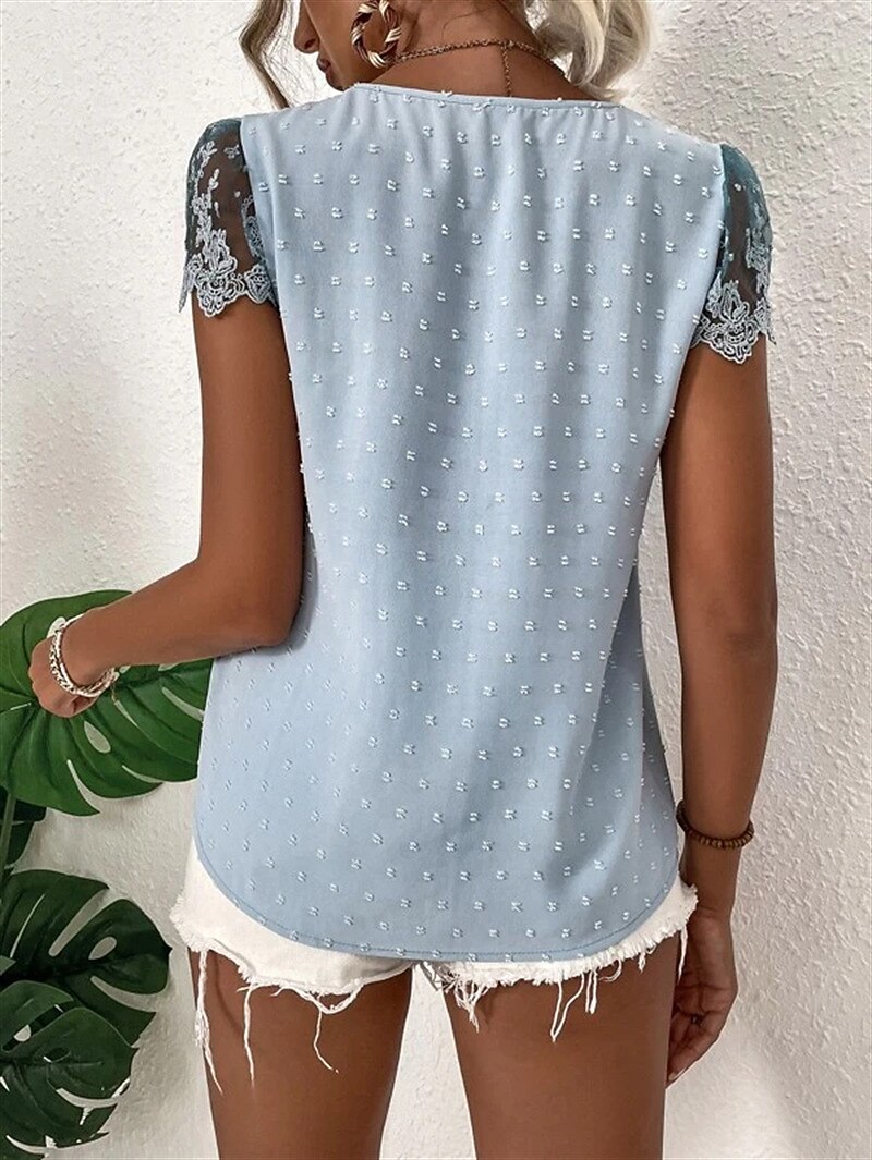 Sleeve Lace Patchwork V Neck Casual Streetwear