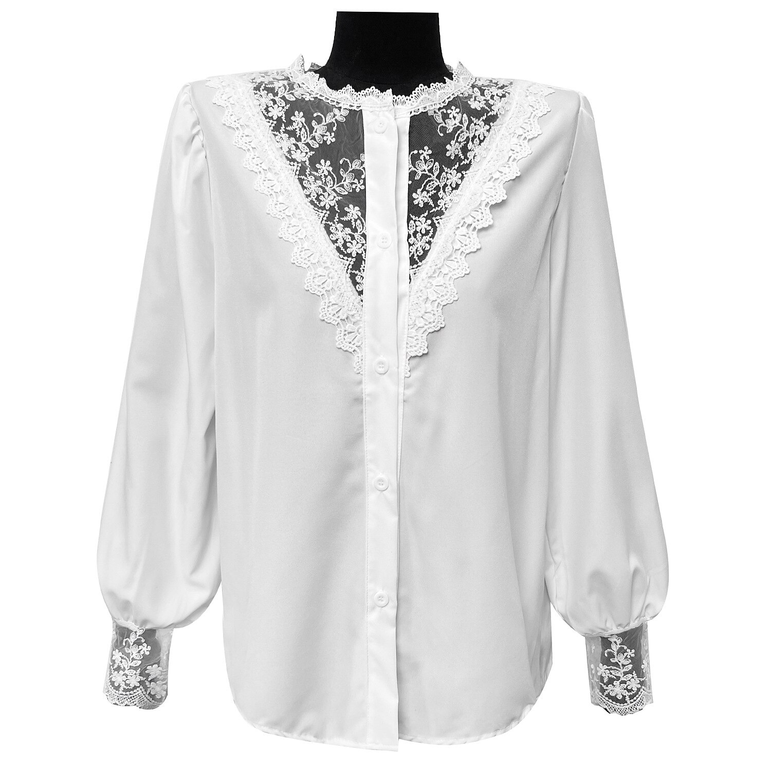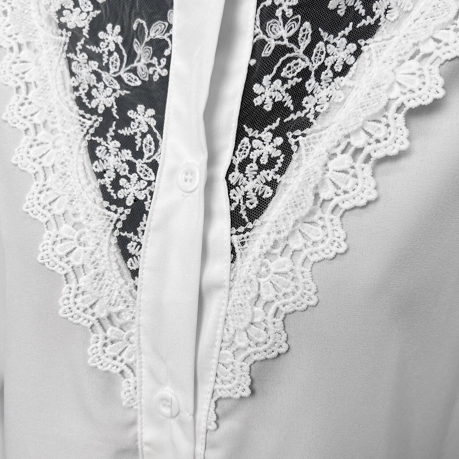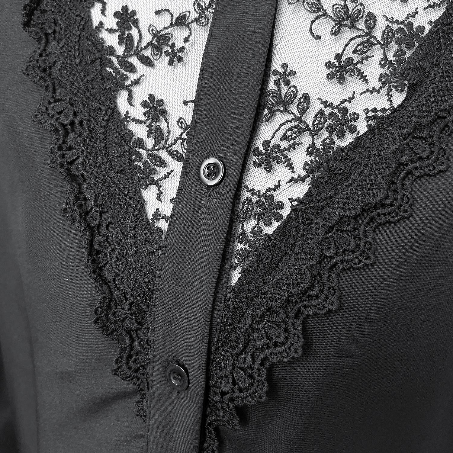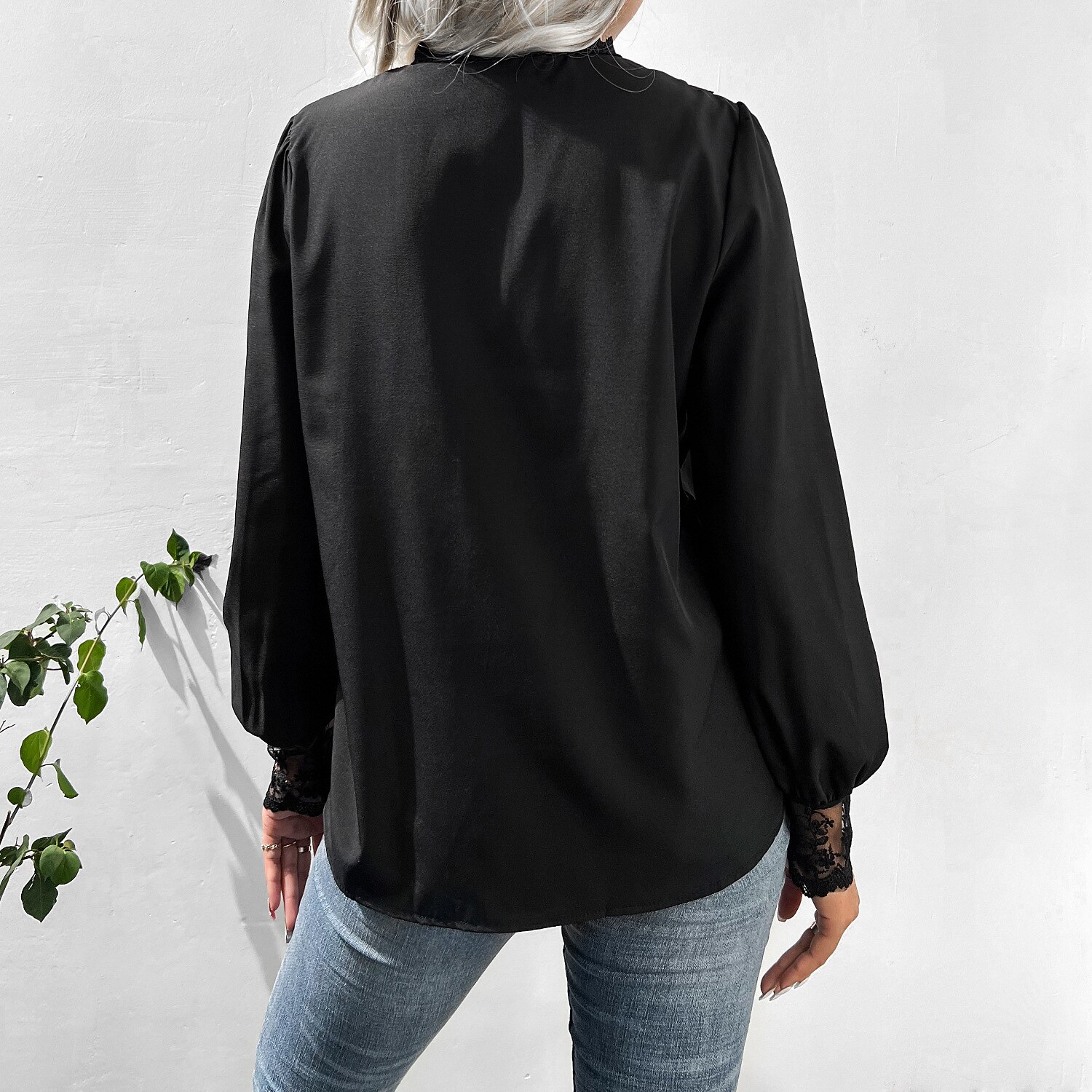Sleeve Lace Patchwork Button Round Neck Casual Streetwear