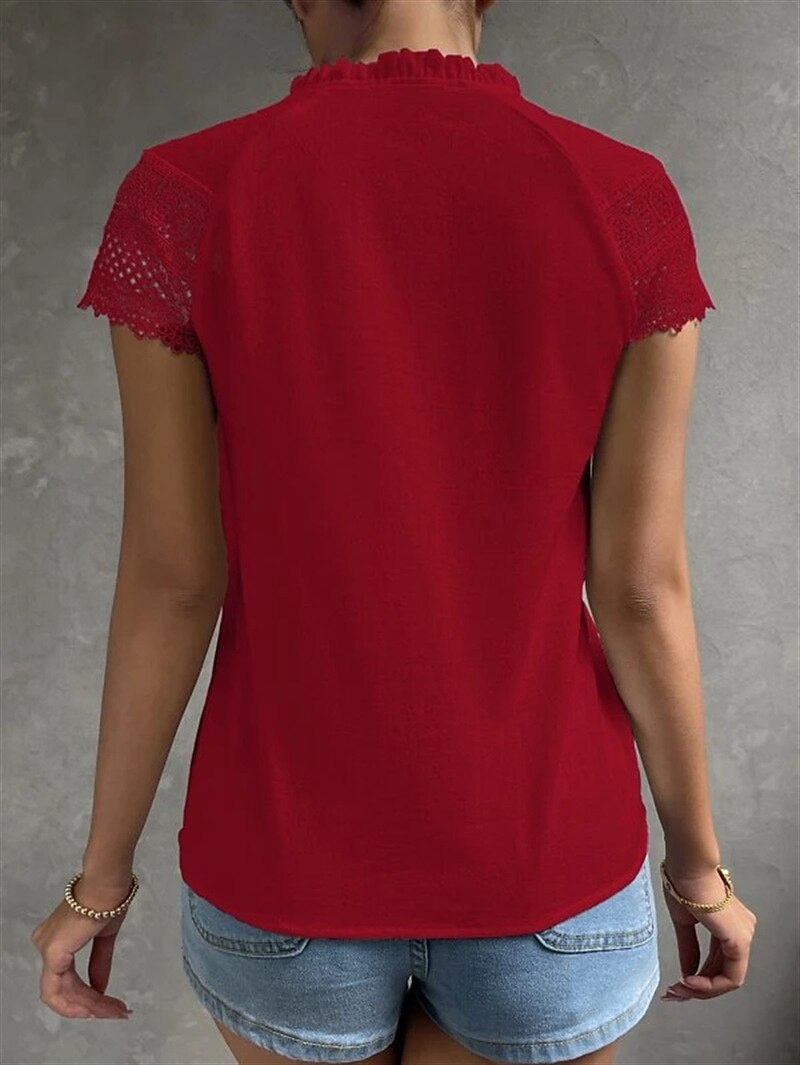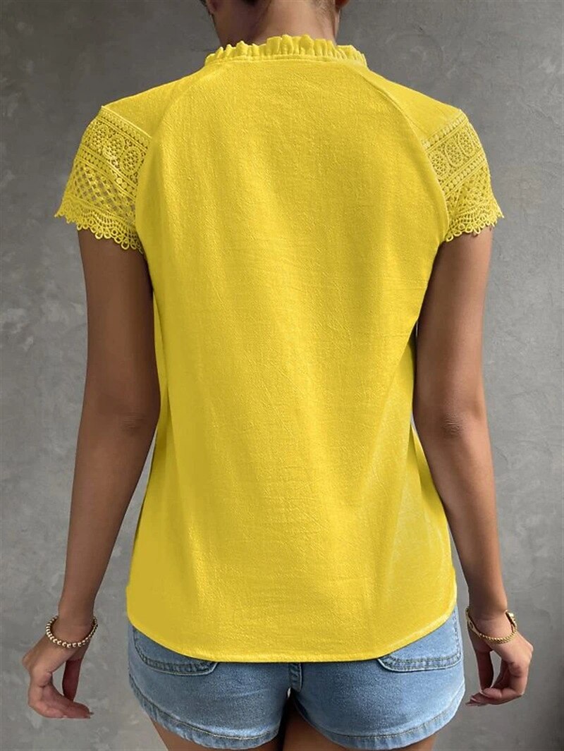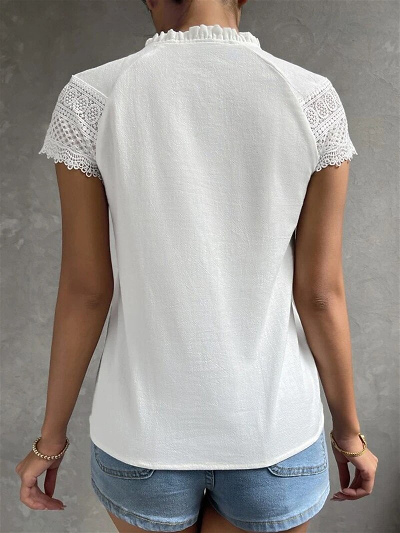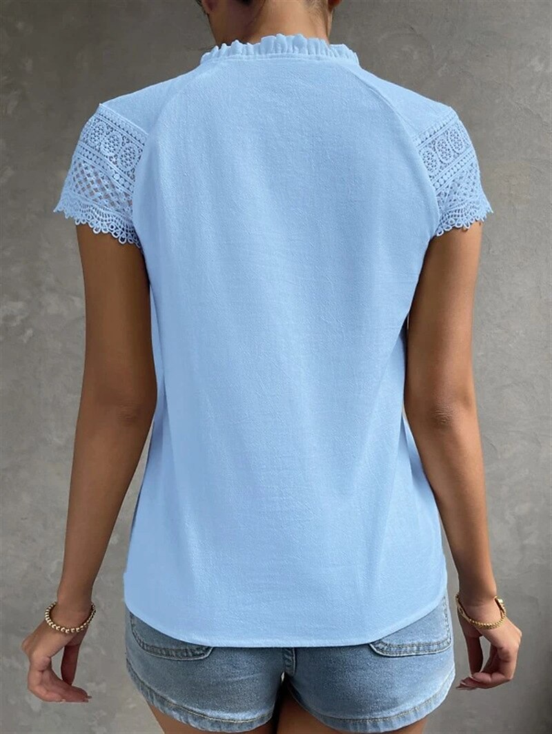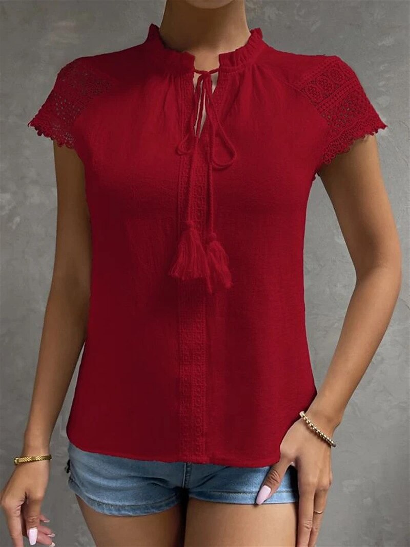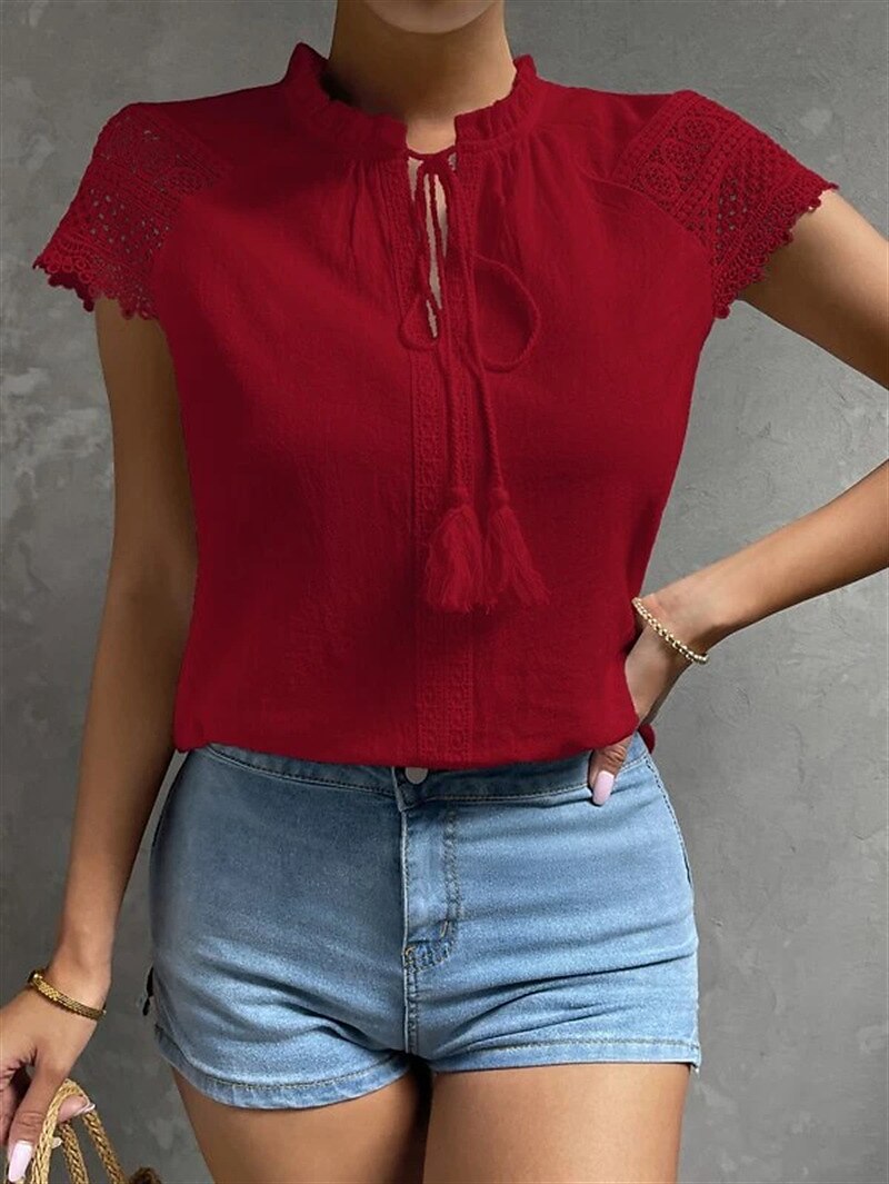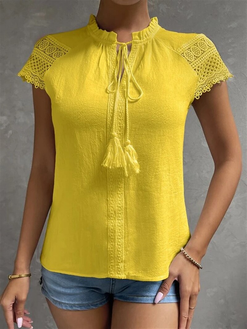 Sleeve Lace up Lace Standing Collar Casual Streetwear