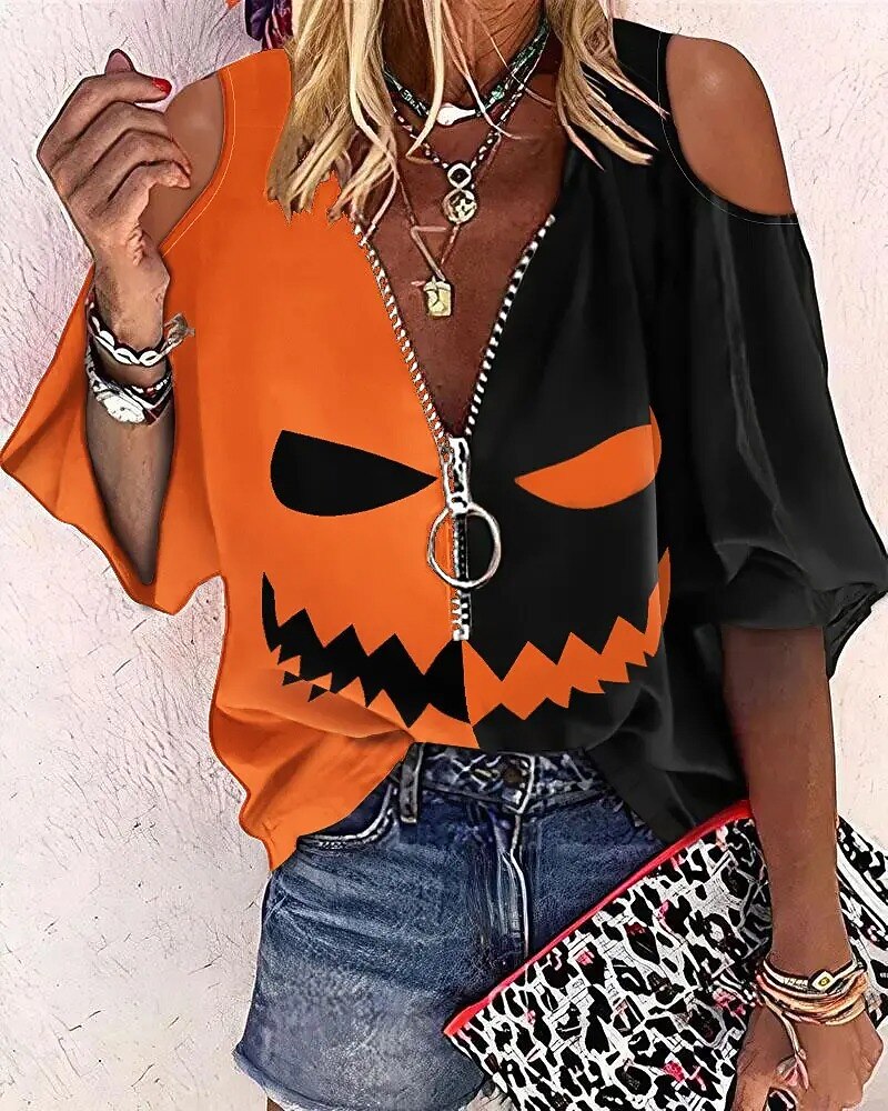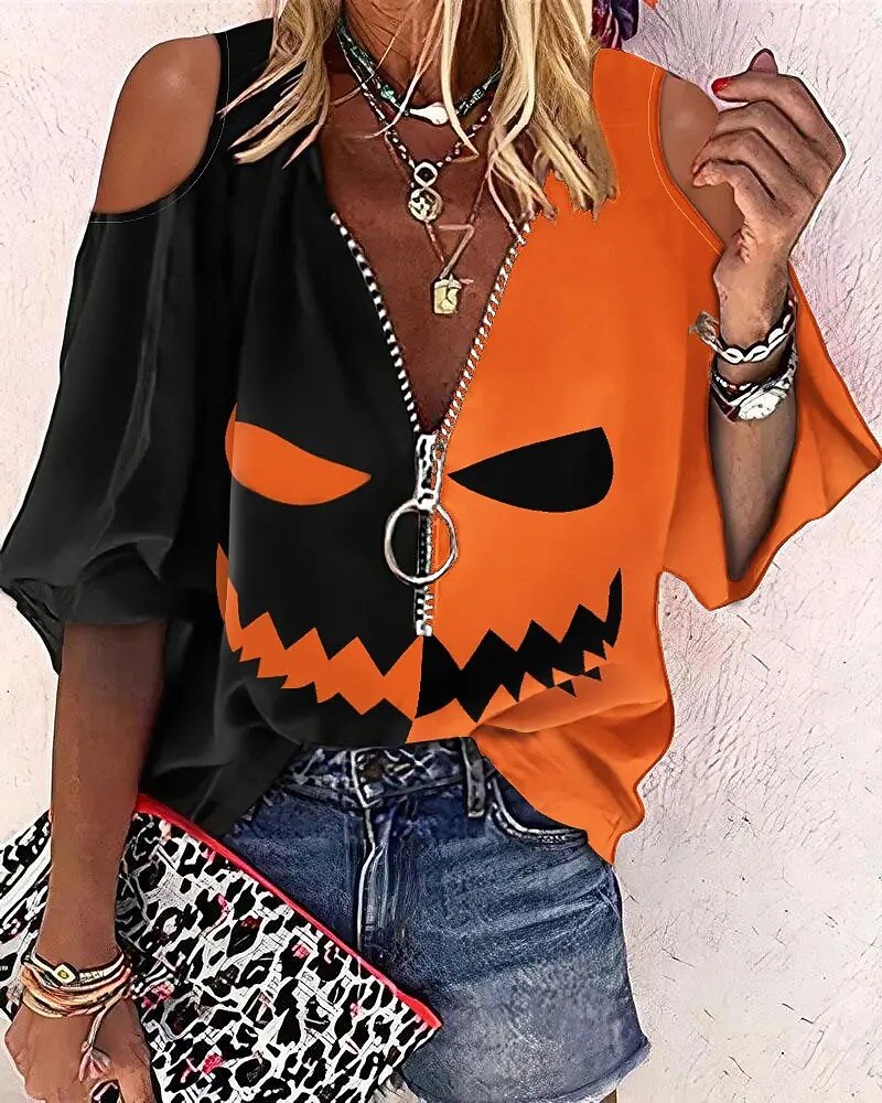 Women's Blouse Pumpkin Halloween Weekend
