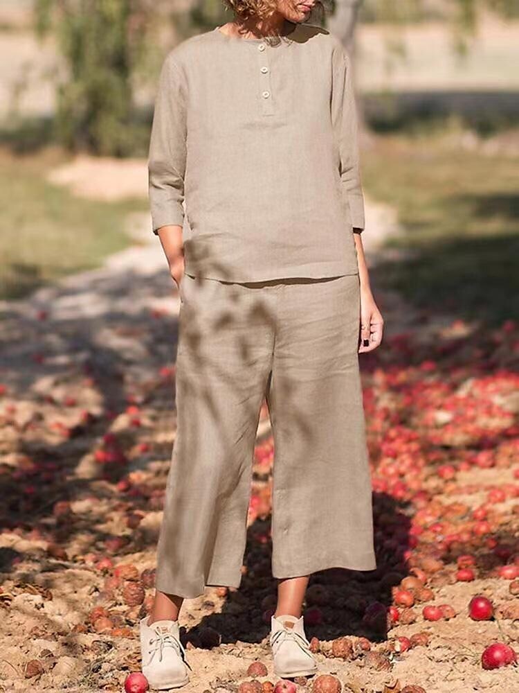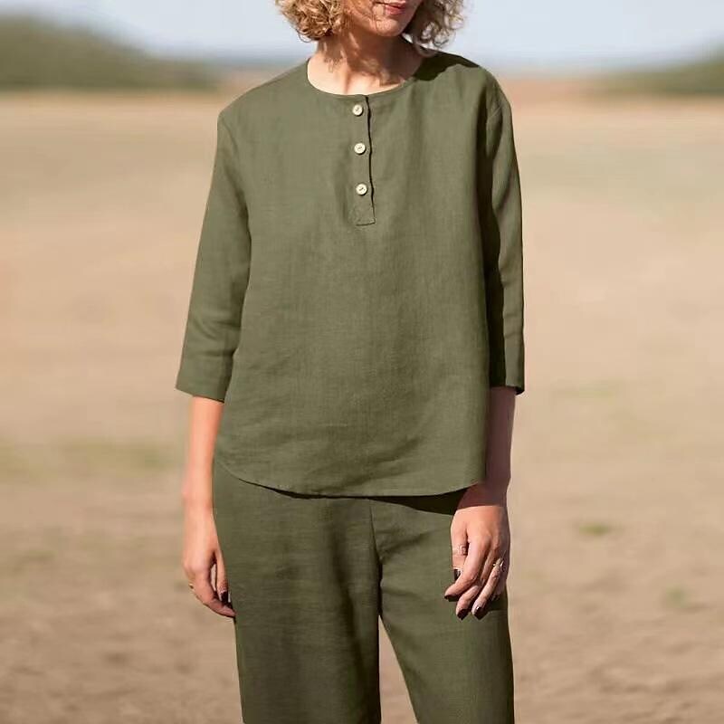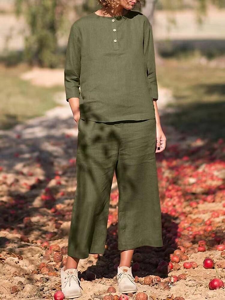 Blouse Shirt Basic Green Blue Casual Daily Solid Color Crew Neck.