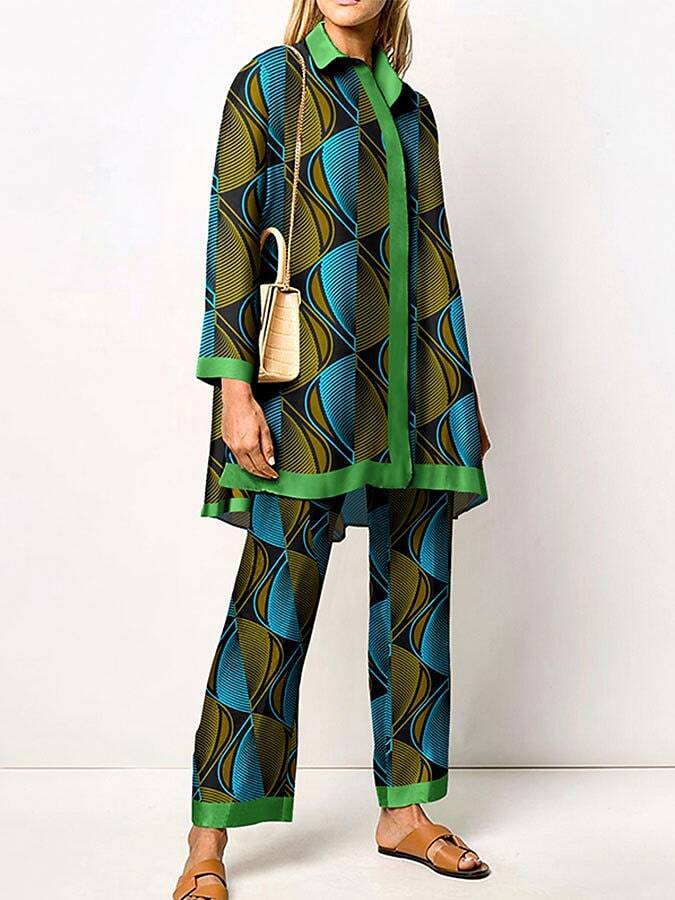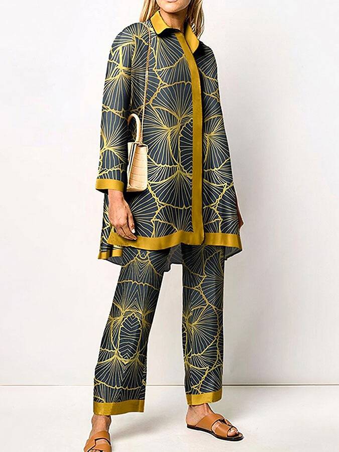 Blouse Shirt Pants Sets Pants Trousers Streetwear Green Yellow Casual Daily Graphic Print Shirt Collar.
