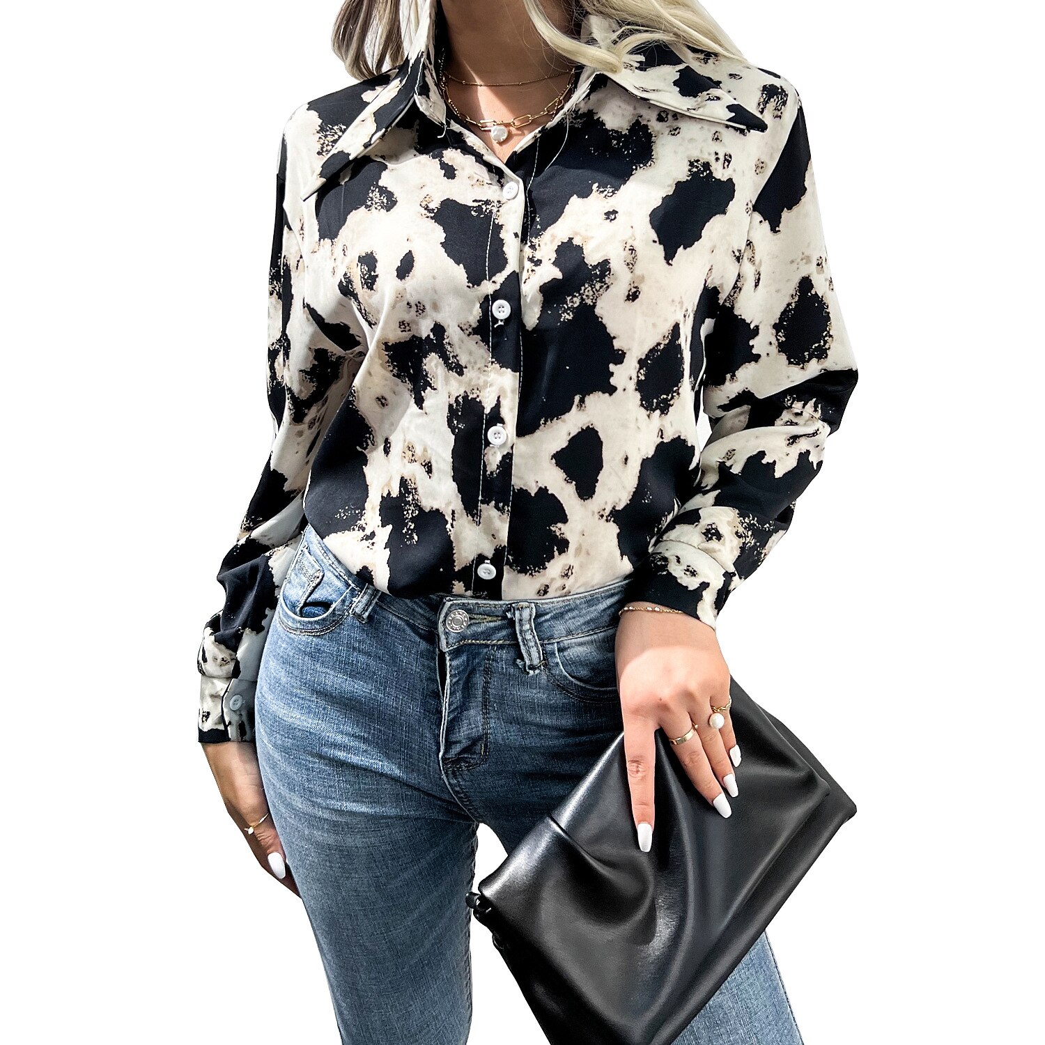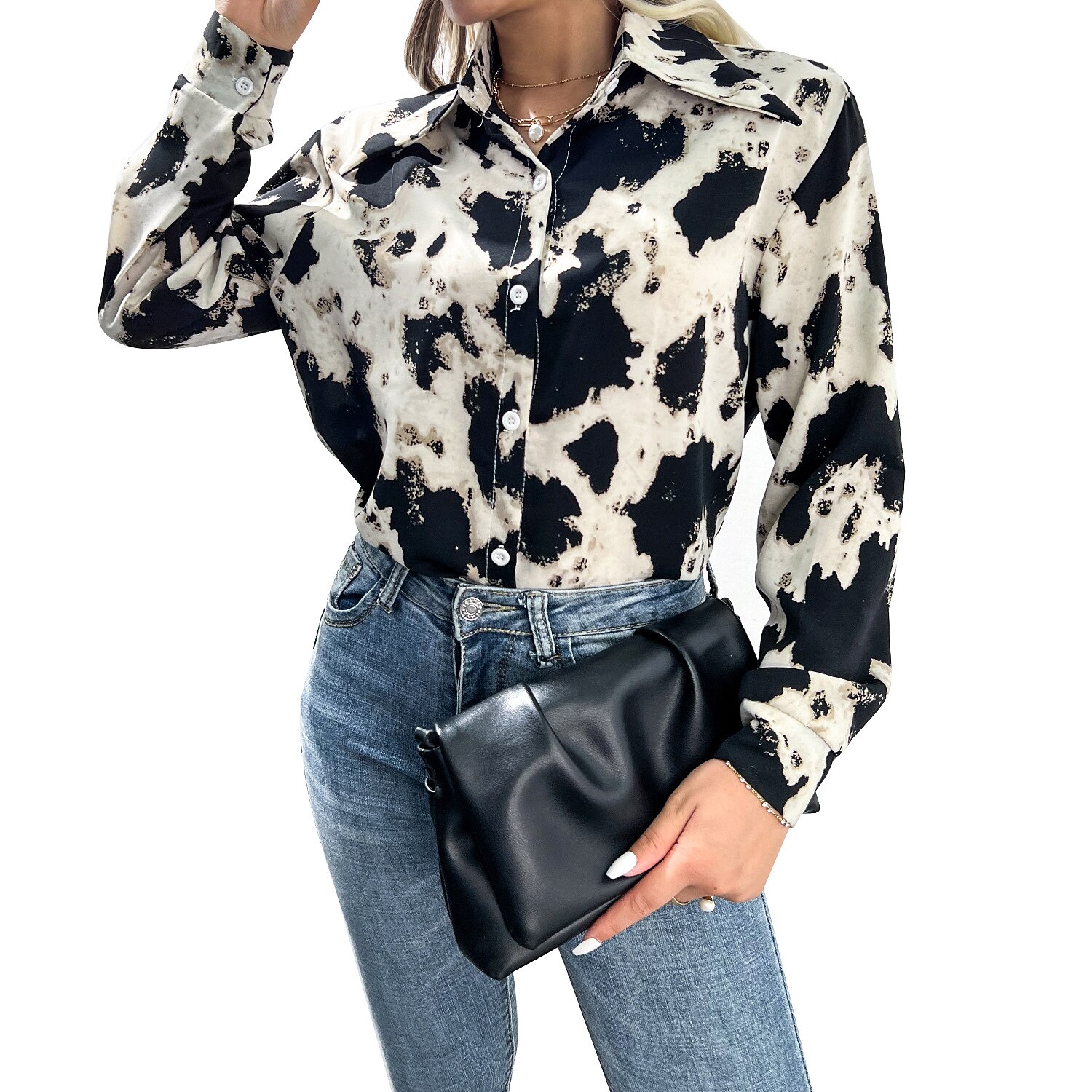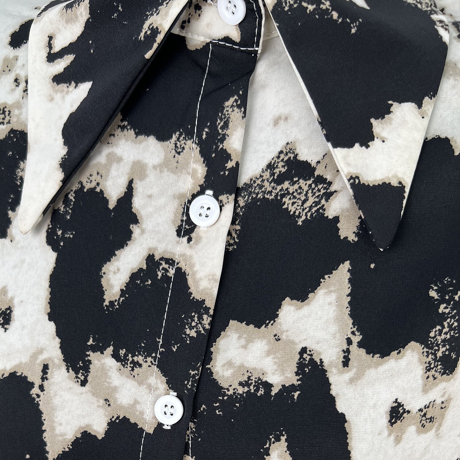 Sleeve Button Print Shirt Collar Casual Streetwear