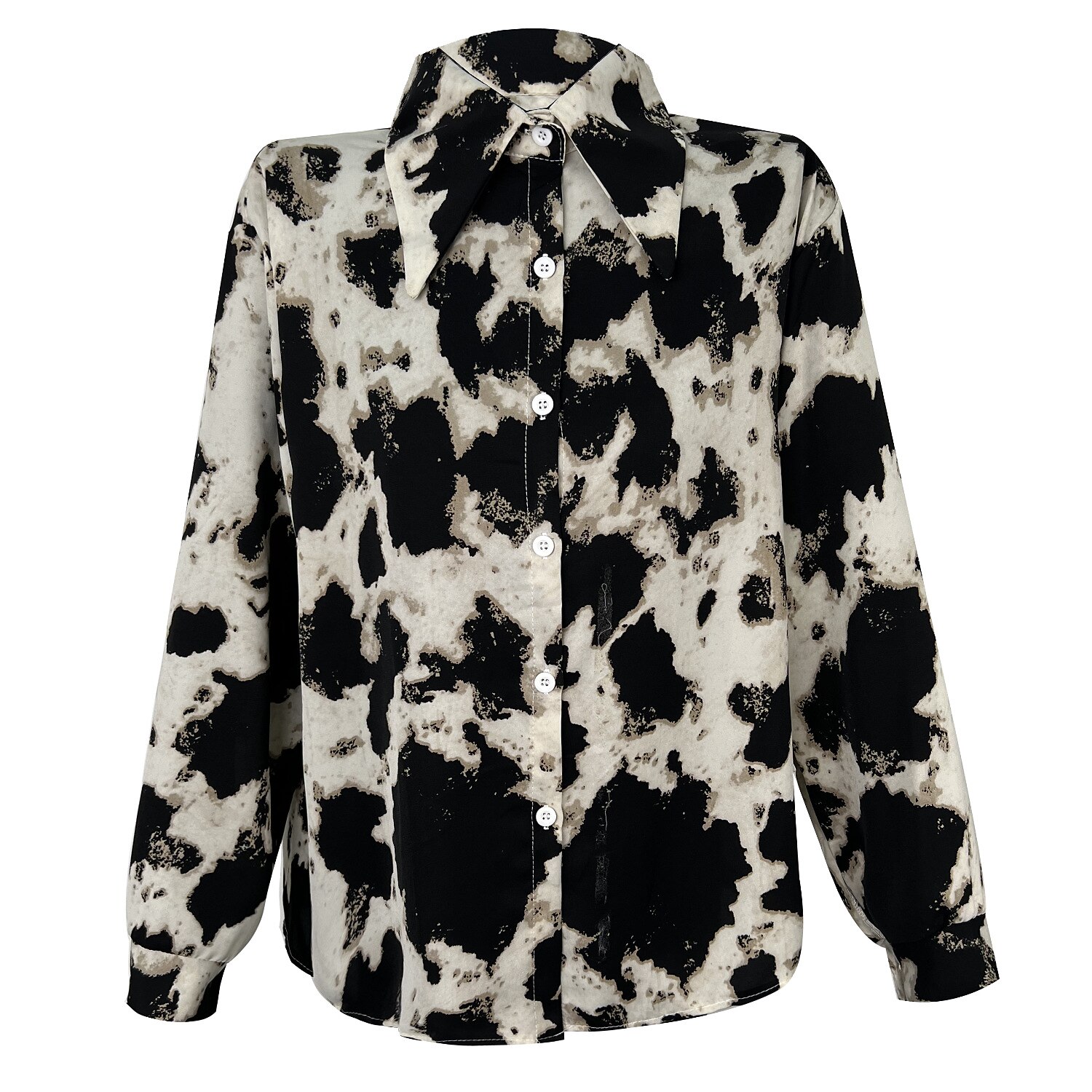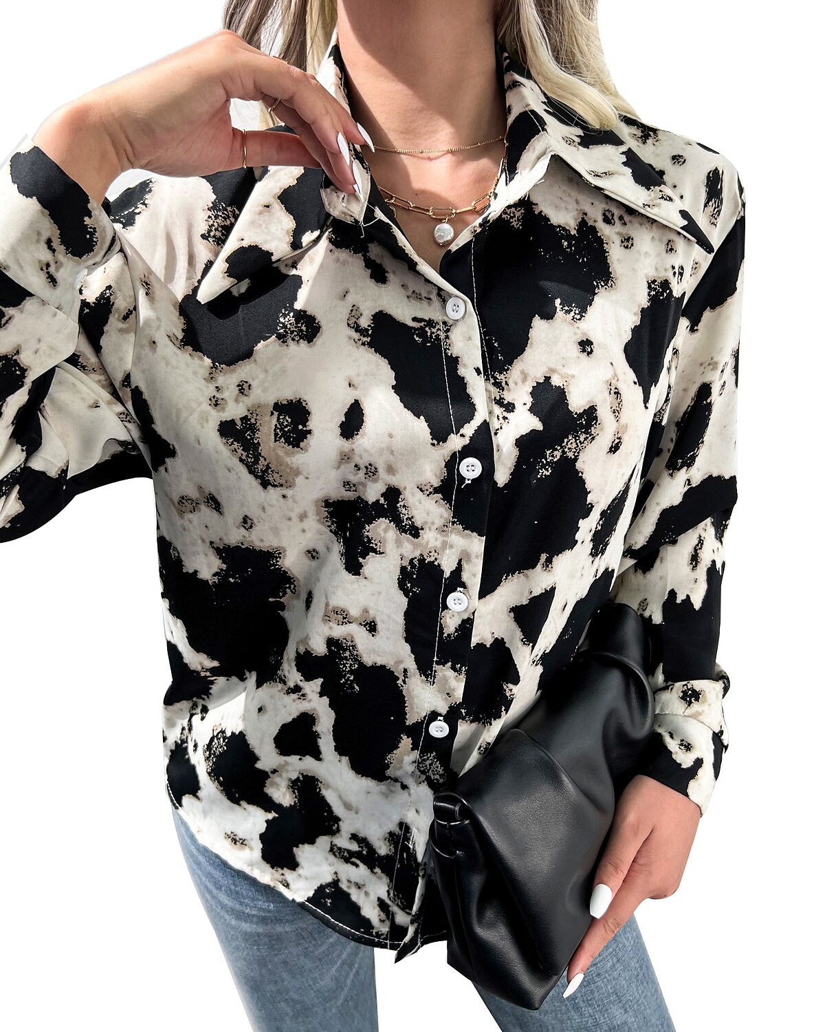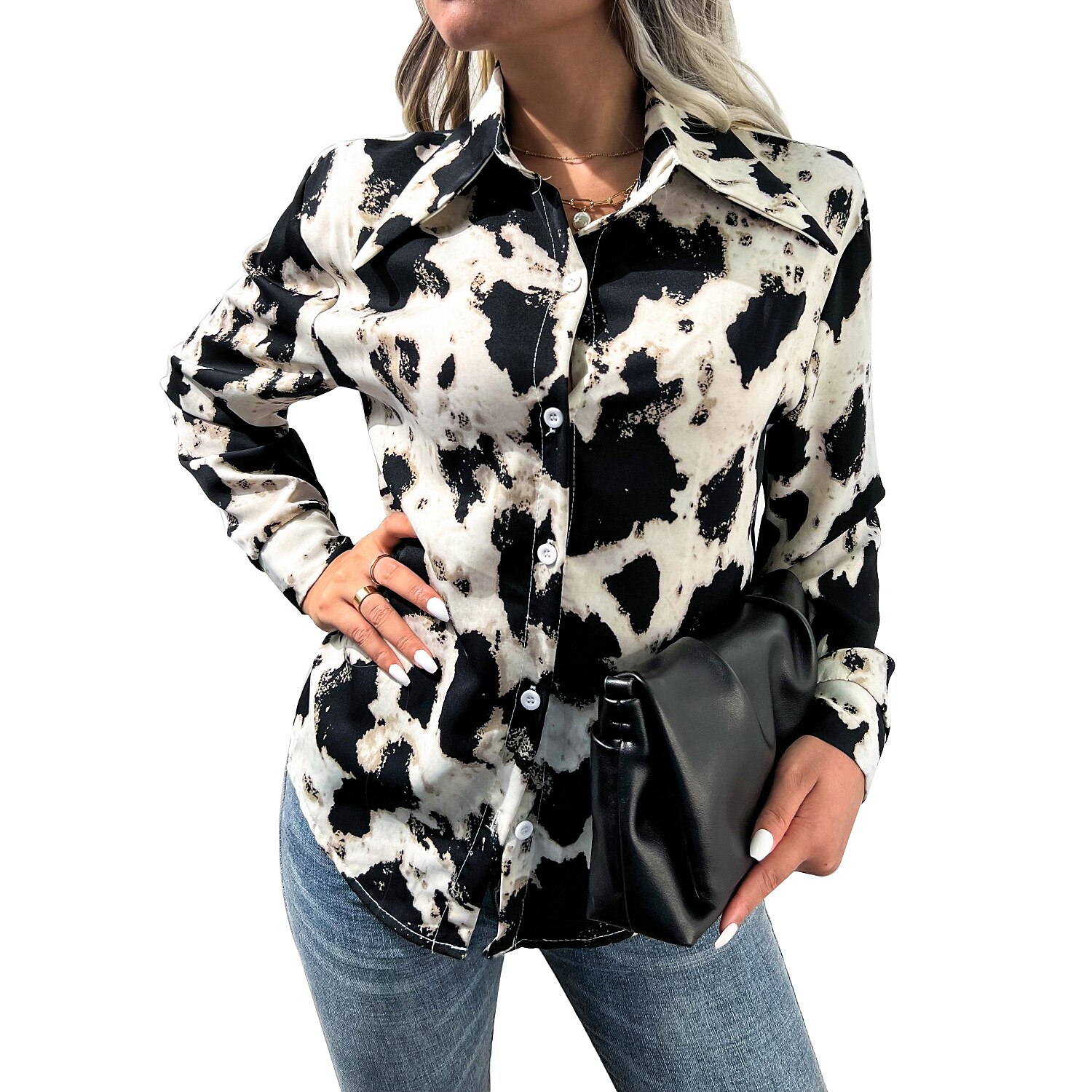 Sleeve Button Print Shirt Collar Casual Streetwear