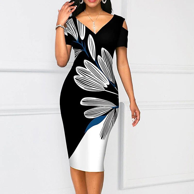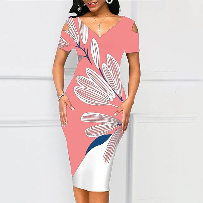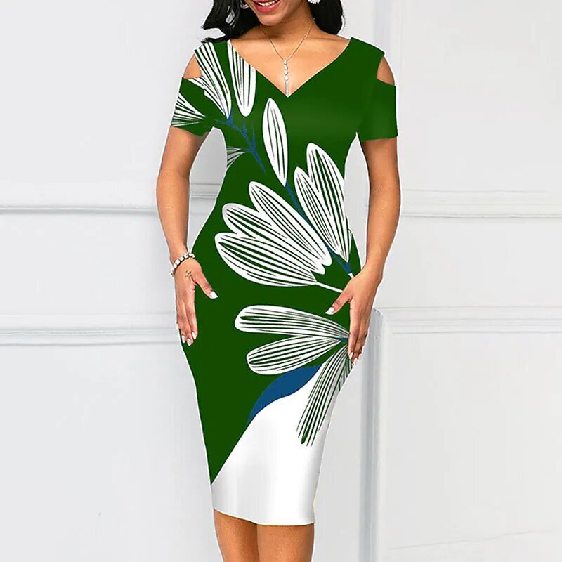 Dress Green Black Pink Short Sleeve Floral Color Block Cold Shoulder Print Spring Summer V Neck Elegant Sexy Mature.