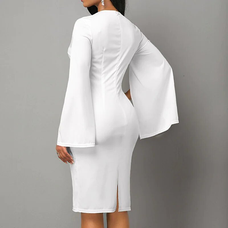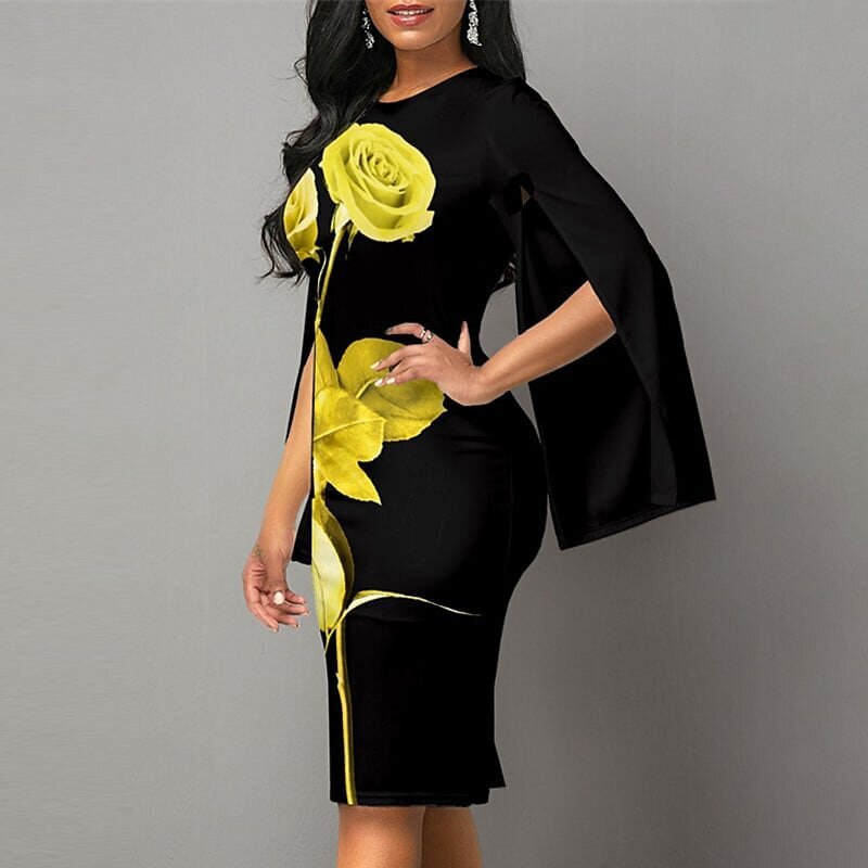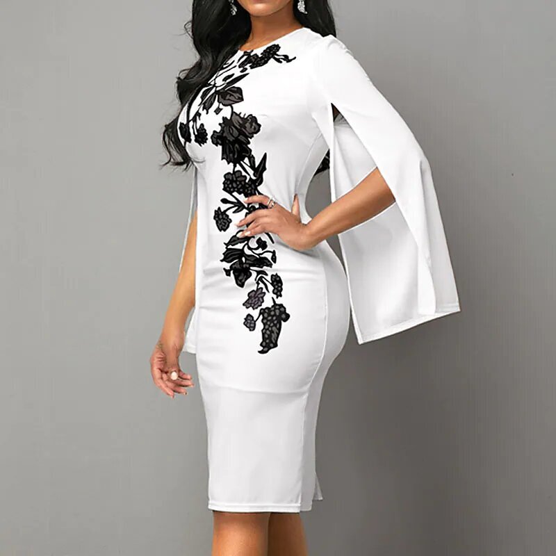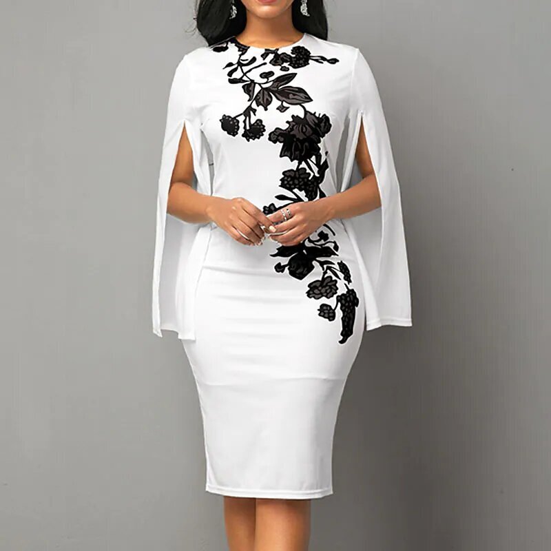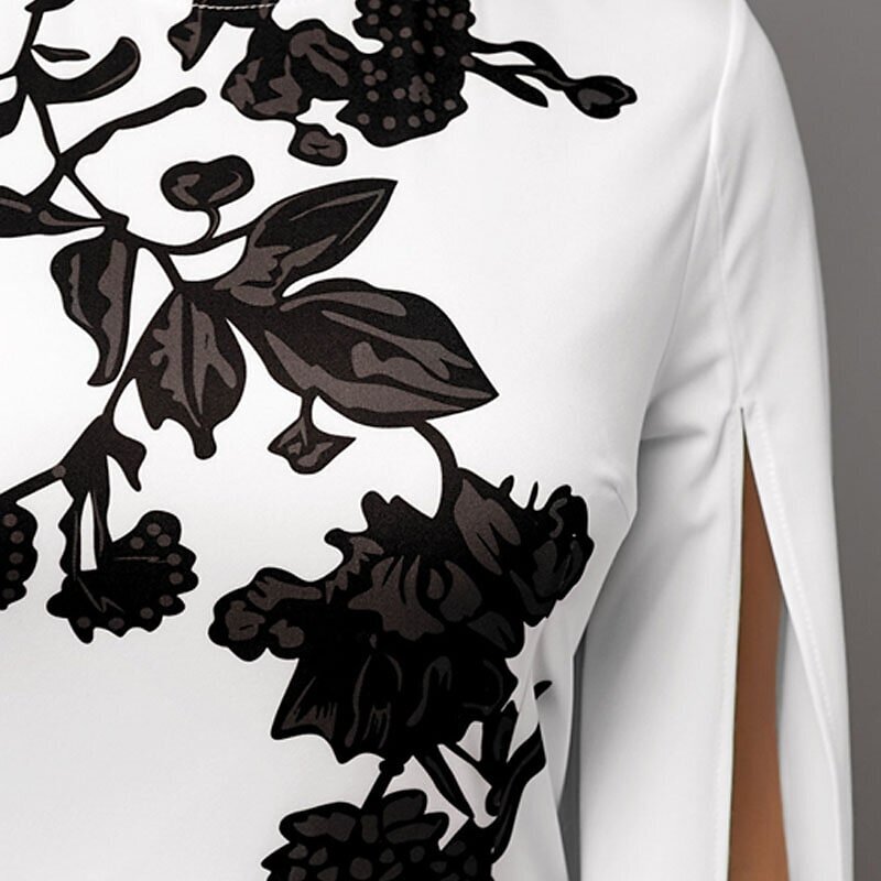 Dress White Black Long Sleeve Floral Split Print Spring Summer Crew Neck Stylish Work Elegant.