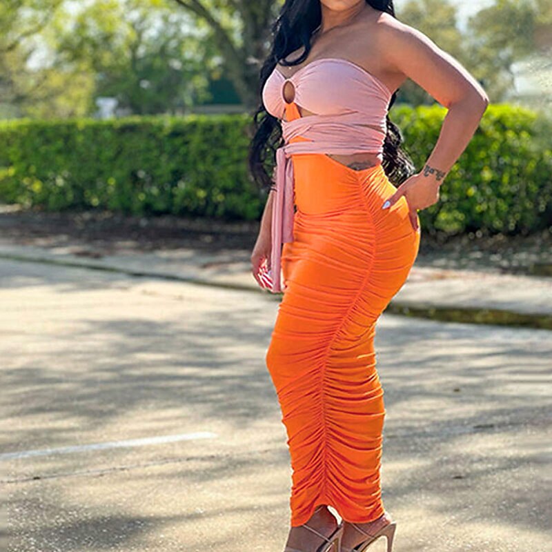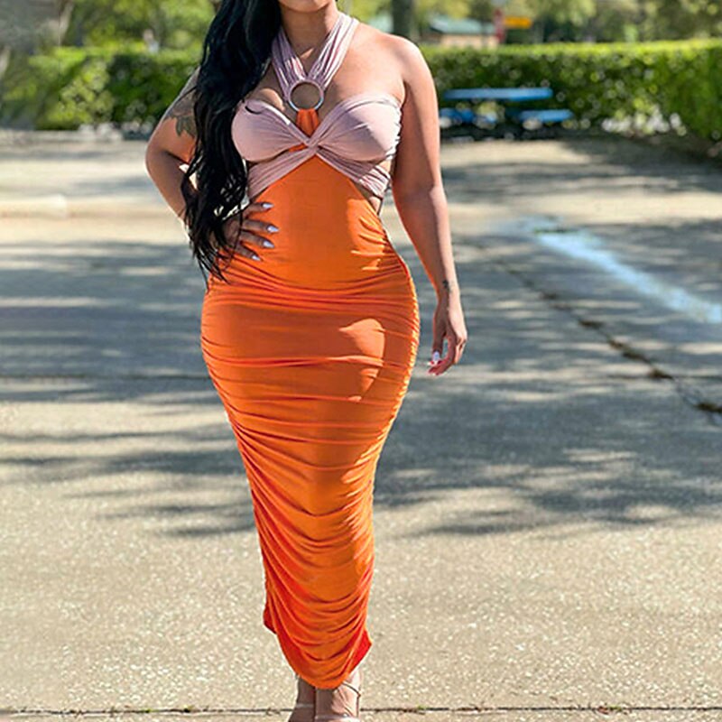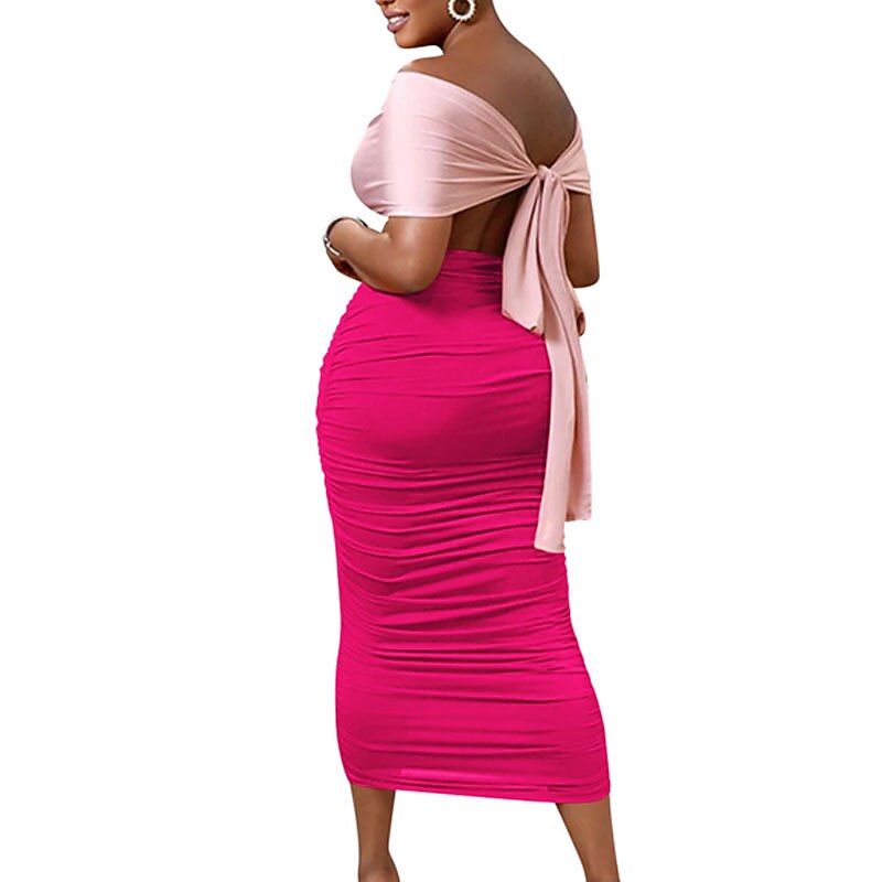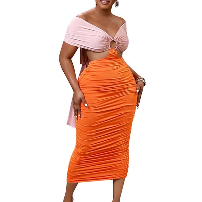 Sleeve Color Block Backless Ruched Cut Out Fall Winter Off Shoulder Stylish Sexy