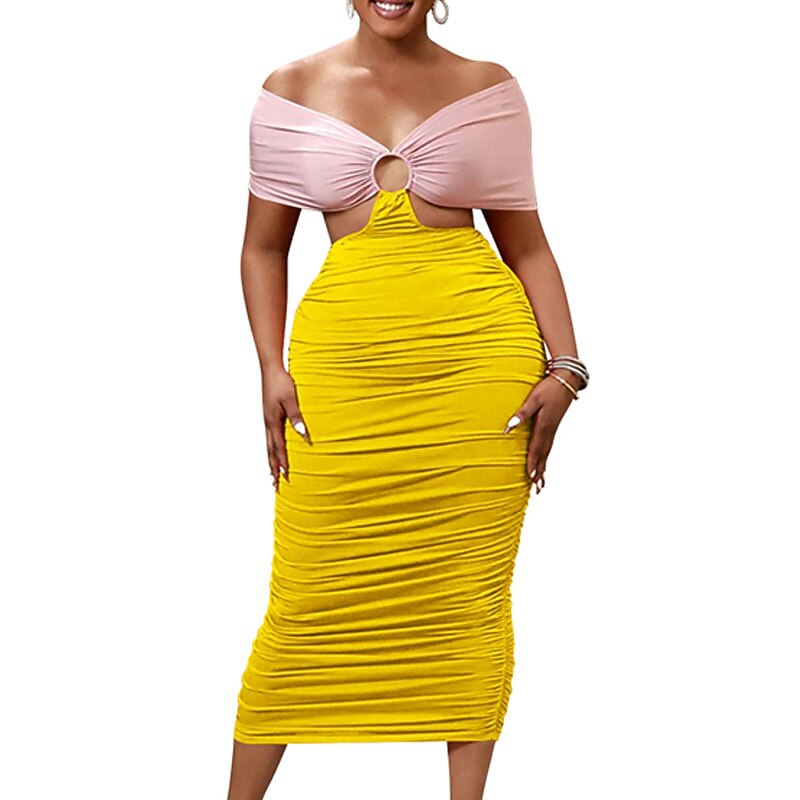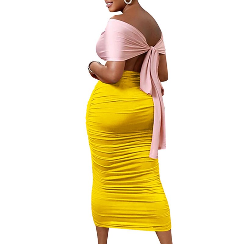 Women's Bodycon Midi Dress Yellow Fuchsia