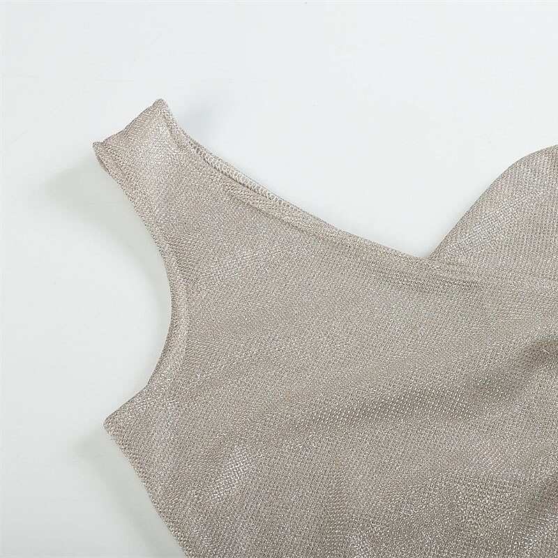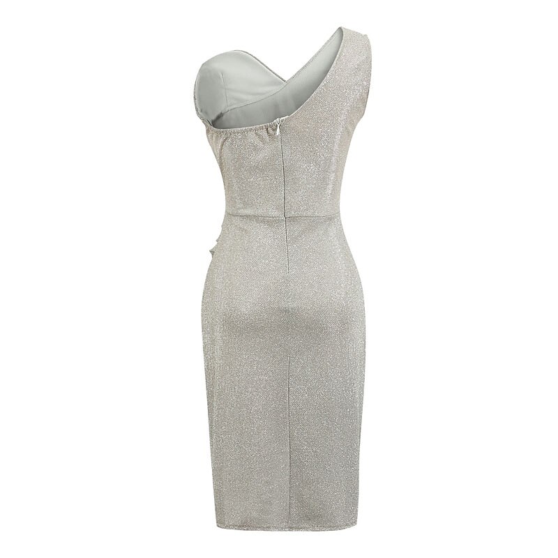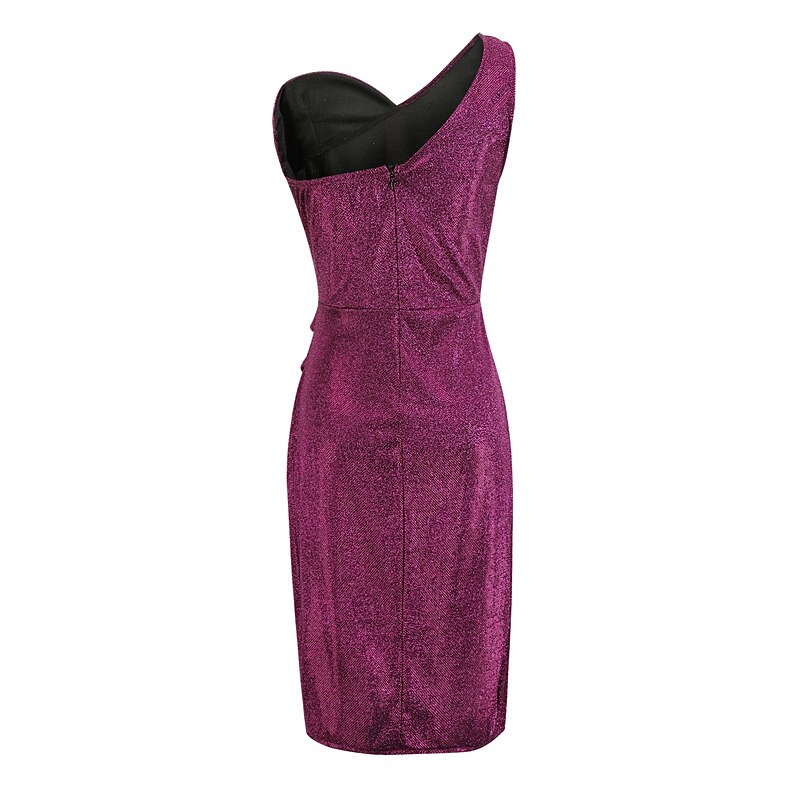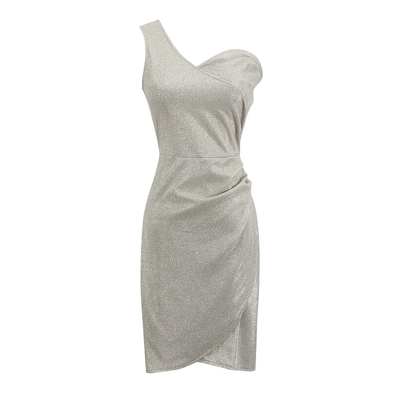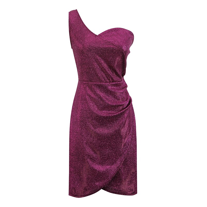 Mini Dress Black Blue Purple Champagne Silver Gold Sleeveless Pure Color Sequins Cold Shoulder Spring Summer One Shoulder Fashion Sexy Modern Party Dress.