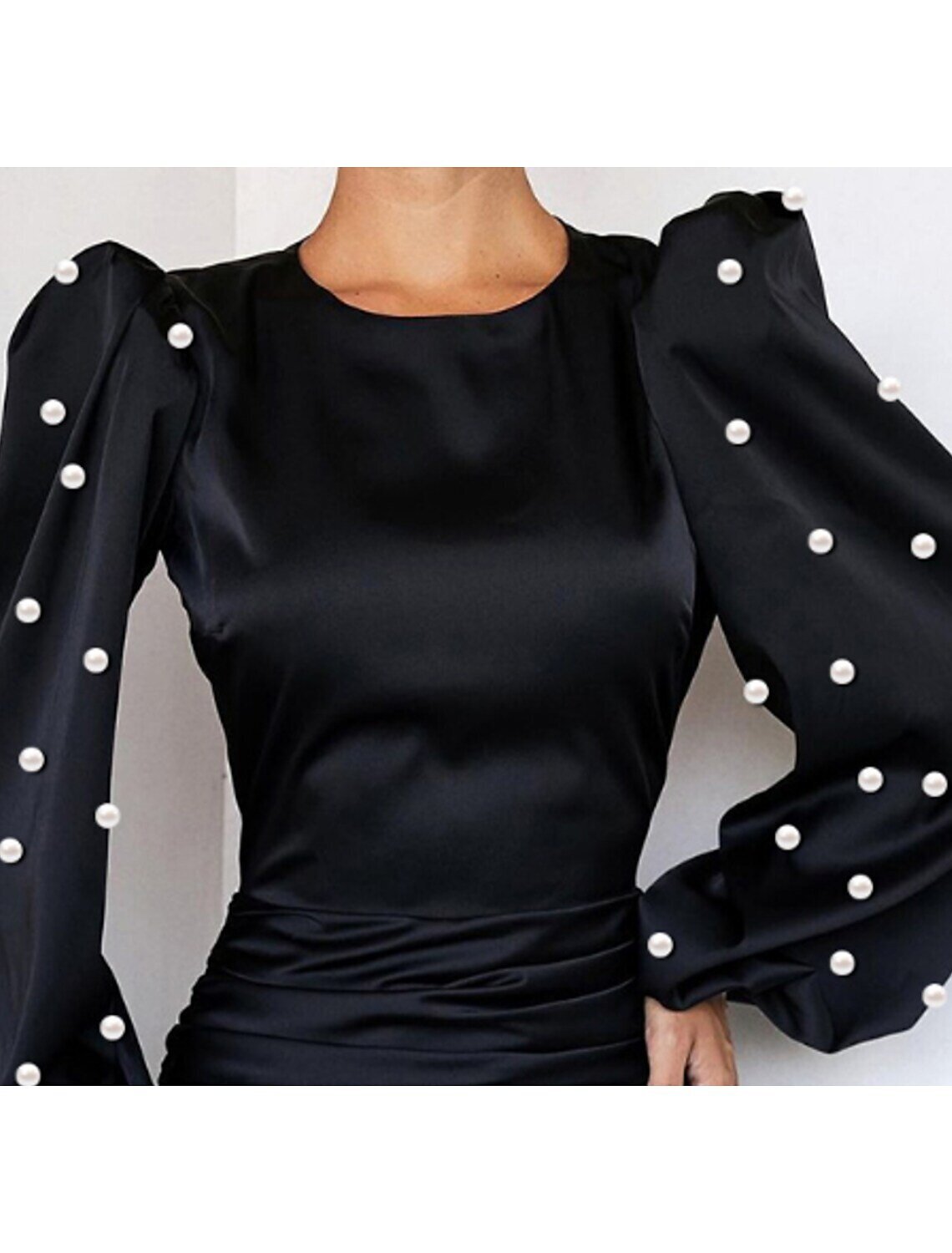 Sleeve Polka Dot Ruched Print Fall Winter Crew Neck Stylish Modern