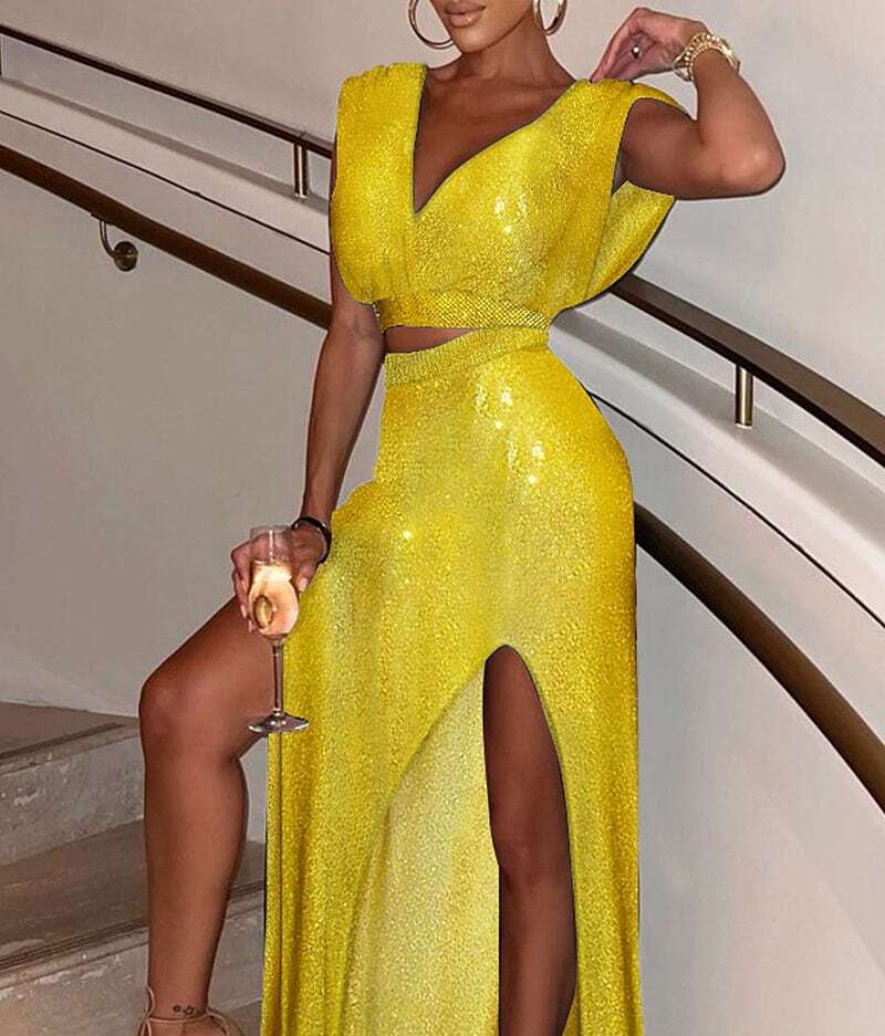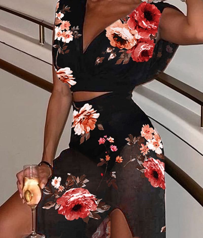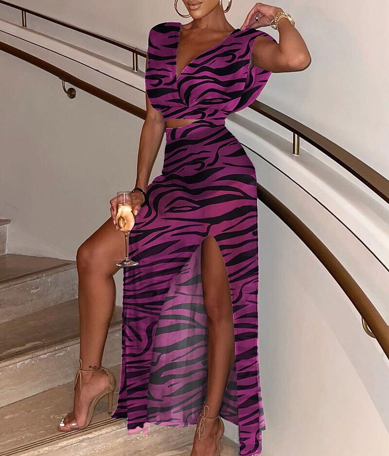 Crop Top Blouse Skirt Sets Sexy Purple Yellow Holiday Vacation Floral Plain Split Print V Neck.
