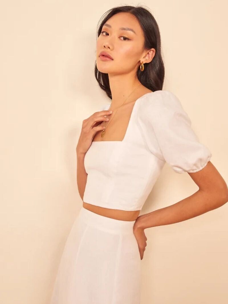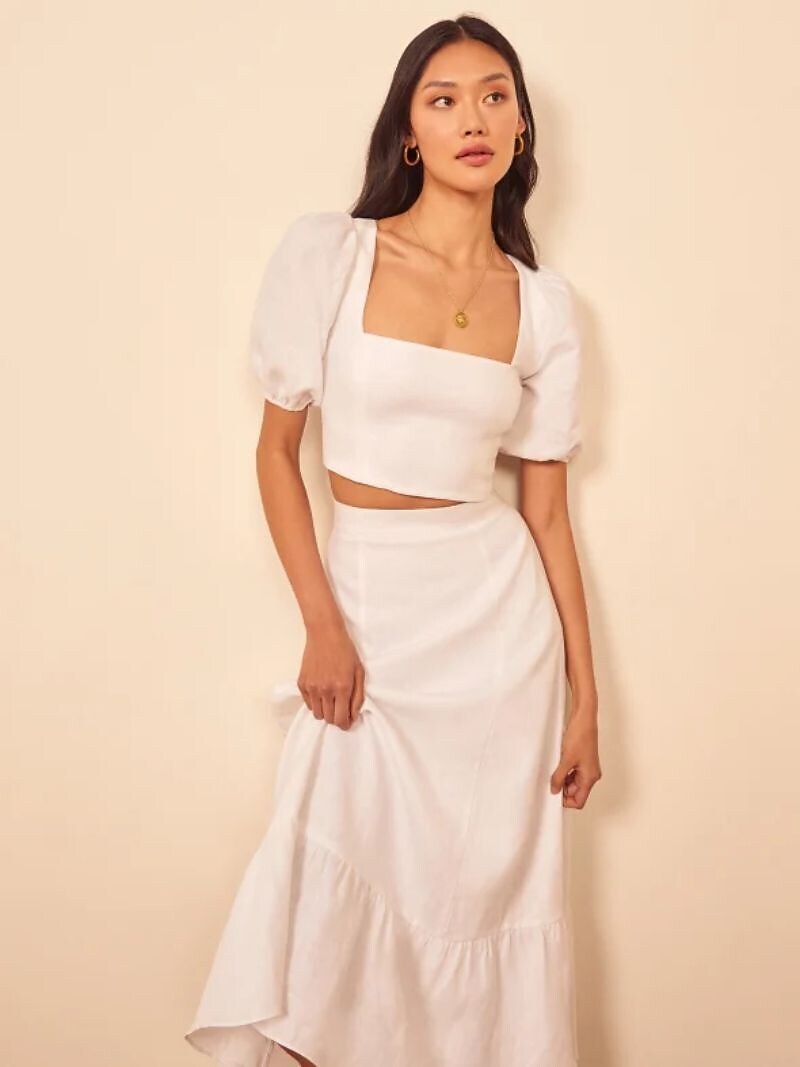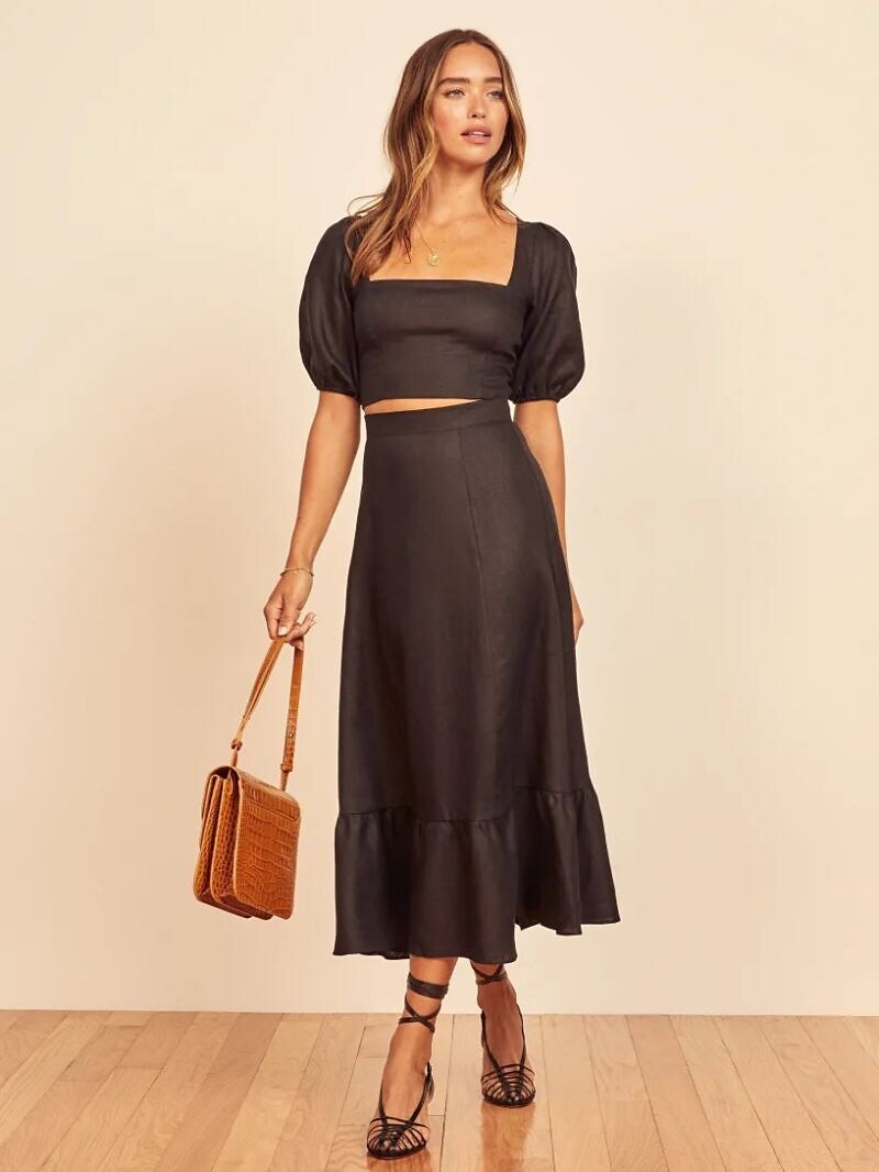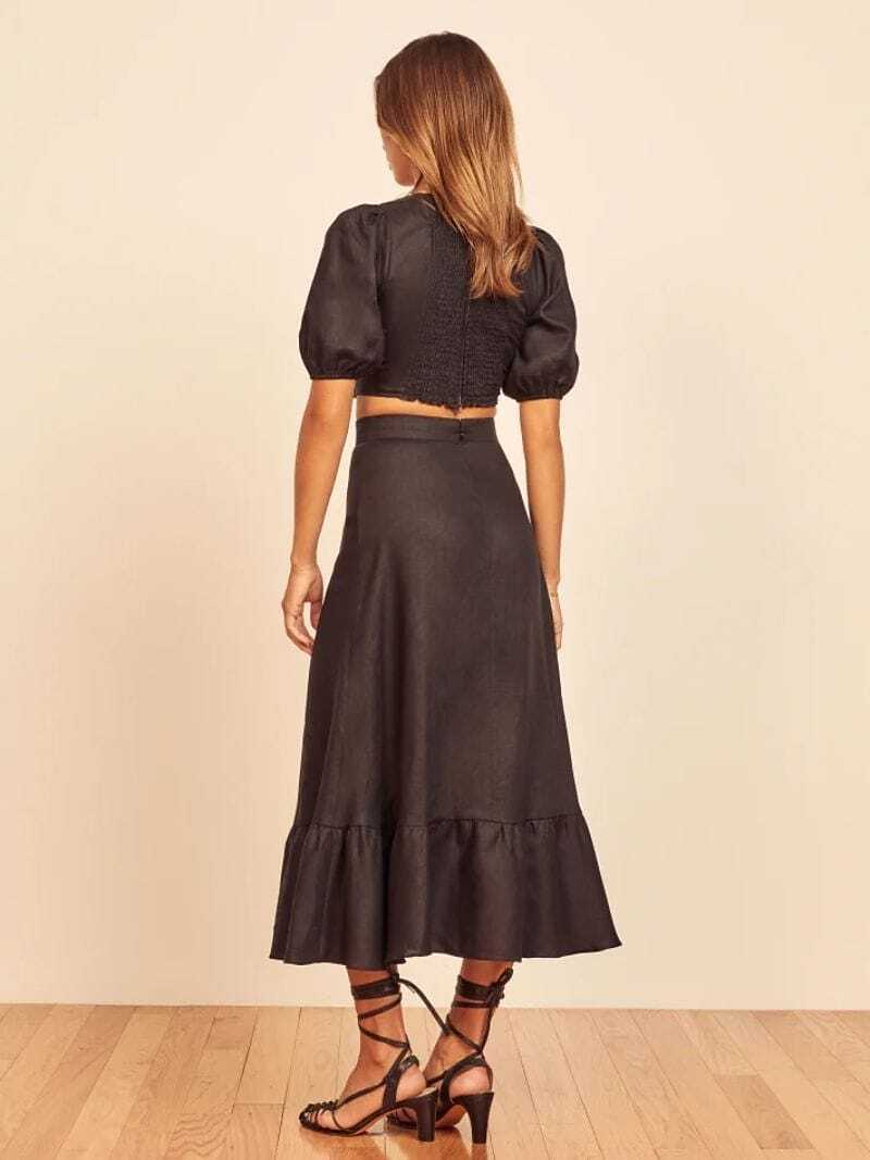 Crop Top Skirt Sets Basic White Black Vacation Casual Daily Solid Color Ruffle Square Neck.