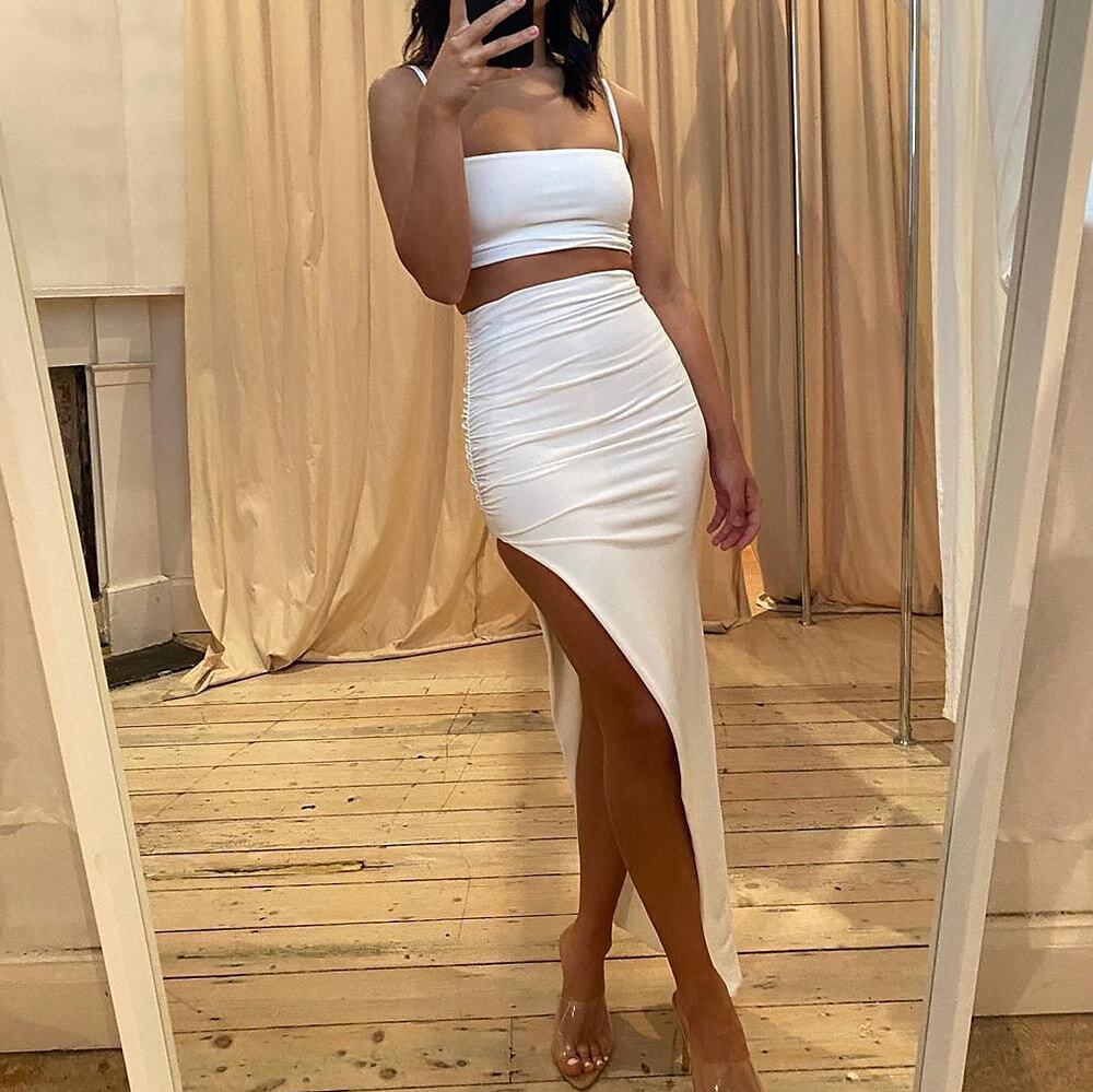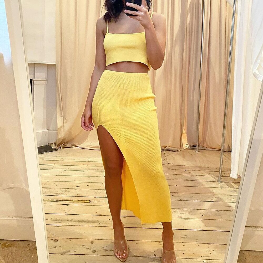 Crop Top Tank Top Skirt Sets Sexy Blue Yellow Casual Vacation Plain Split Strap.
