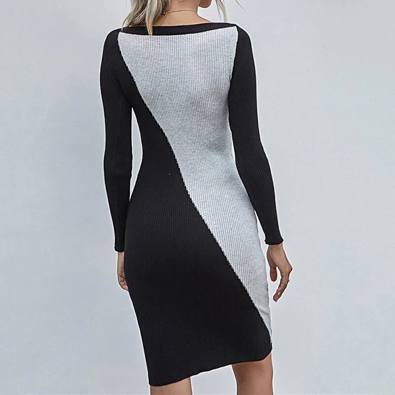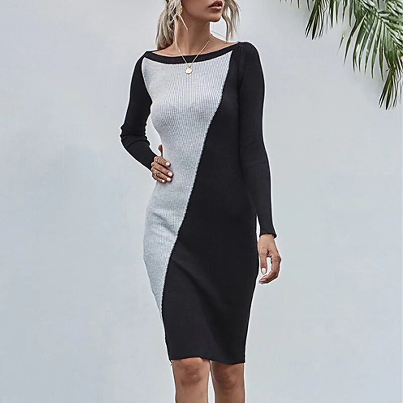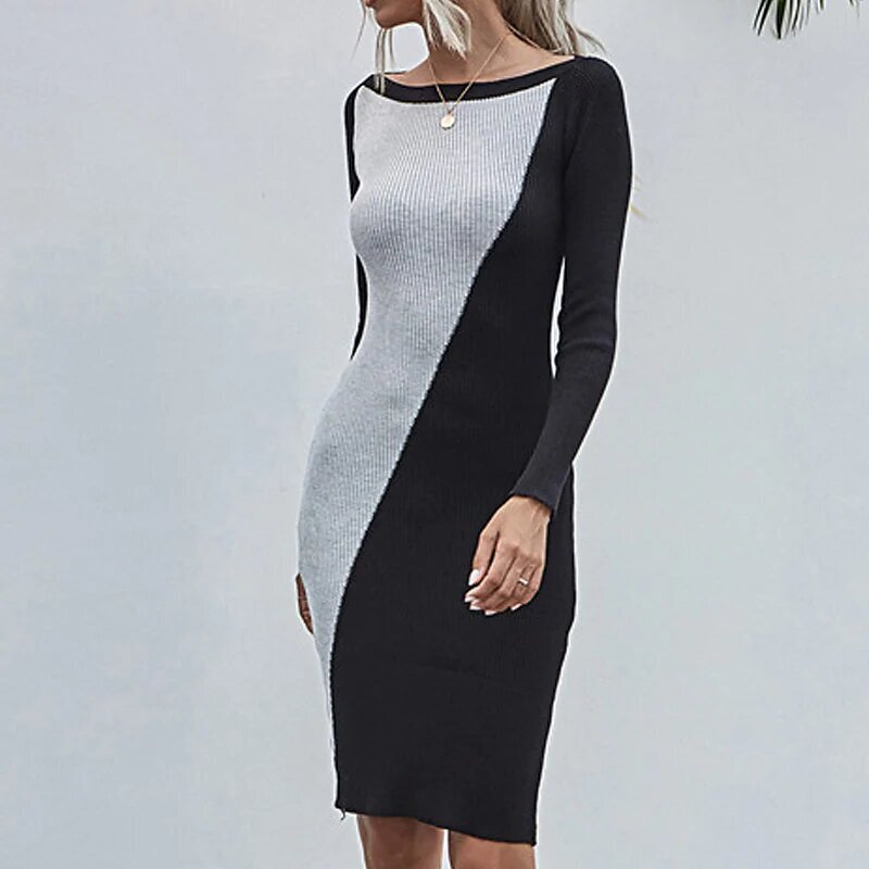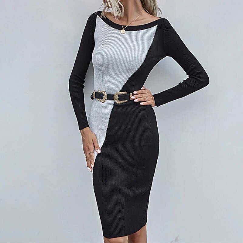 Ribbed Knit Knitted Color Block Crew Neck Stylish Elegant Daily Holiday Fall Winter Black.
