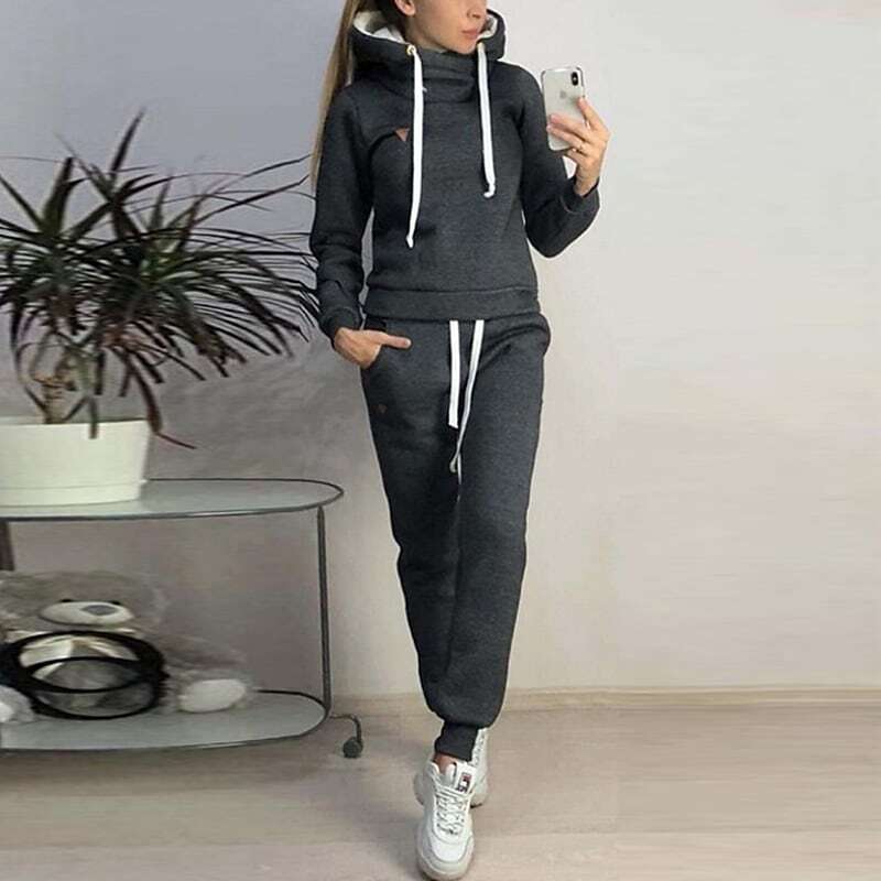 Hoodie Bolero Top Dark Grey Blue Casual Daily Plain Hooded Pant.