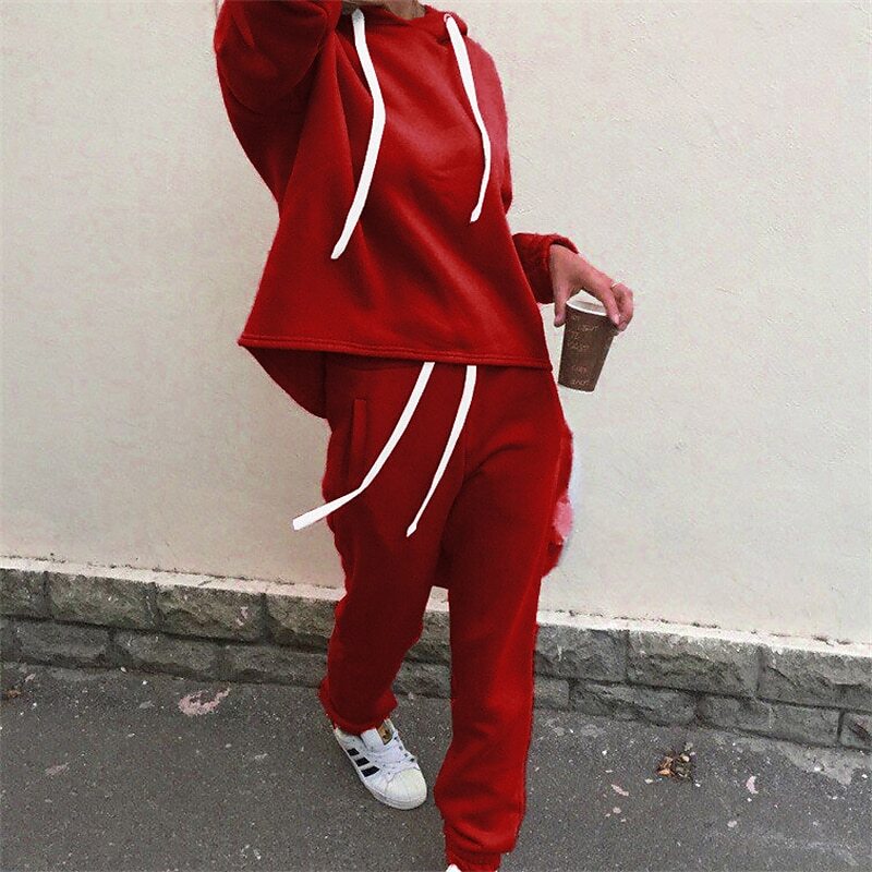Hoodie Plain Casual Daily Sports Casual Two Piece Set Black Blue Wine.