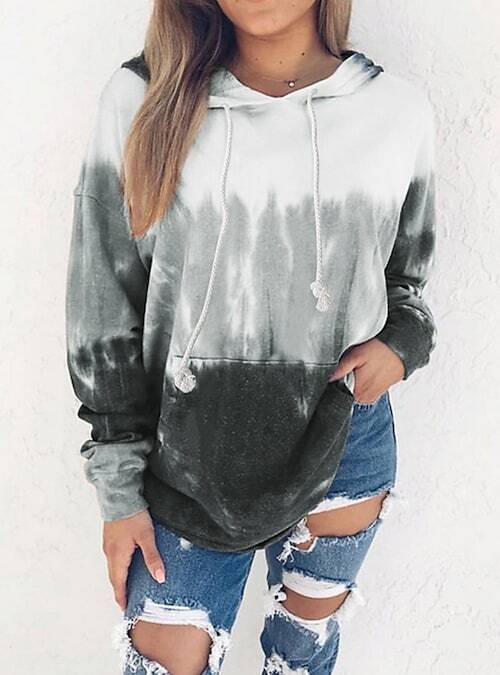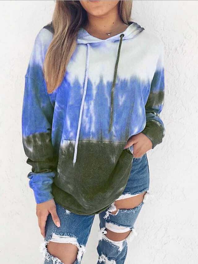 Hoodie Sweatshirt Pullover Casual Tie Dye Blue Gray Orange Tie Dye Loose Daily Hooded.