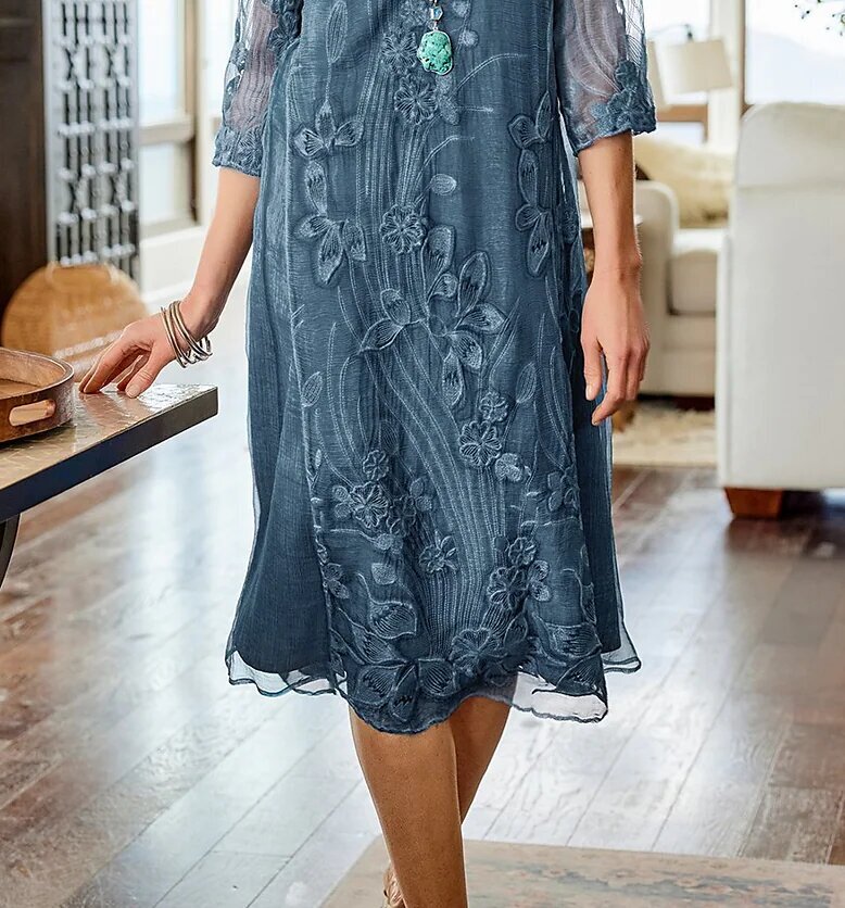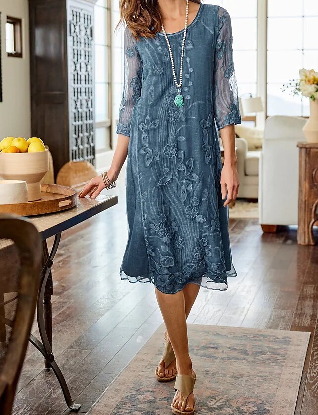 Length Sleeve Floral Embroidered Layered Spring Summer Crew Neck Casual Modern 2022