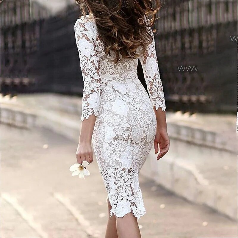 Length Sleeve Solid Color Lace Fall Spring Round Neck Party Romantic Prom Dress 2022
