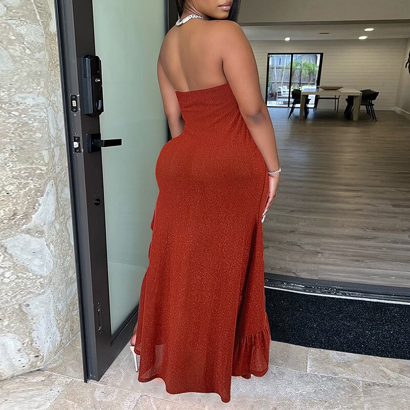 Sleeveless Pure Color Split Ruffle Summer Strapless Party Sexy